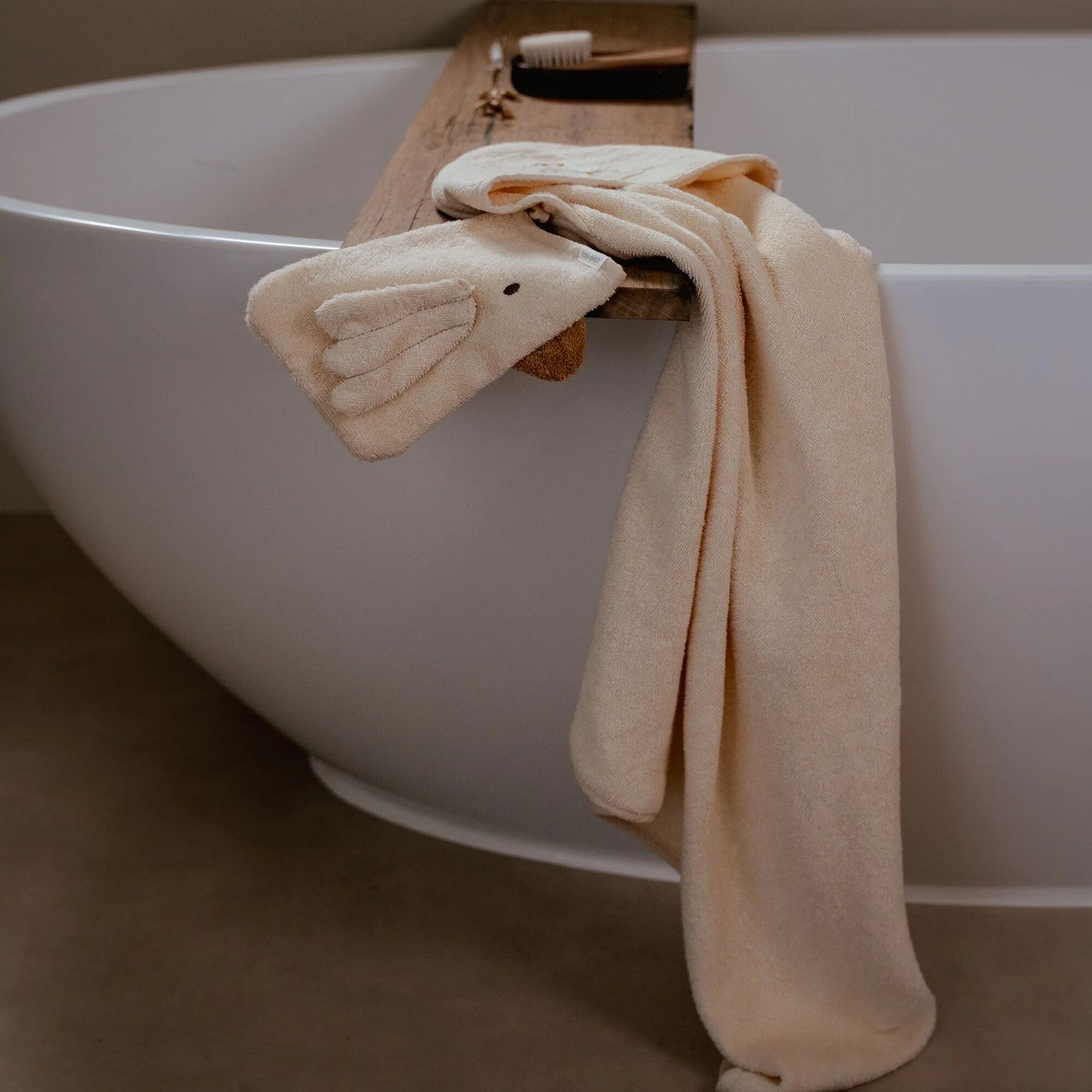 Featuring an adorably shaped goose washcloth and a cosy bath cape adorned with charming goose embroidery, it's both practical and utterly charming. The gorgeous gift packaging doubles as a keepsake box”perfect for treasuring those precious early memories. A playful, thoughtful present that brings joy to bath time.