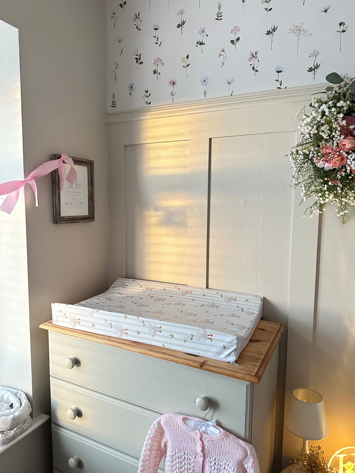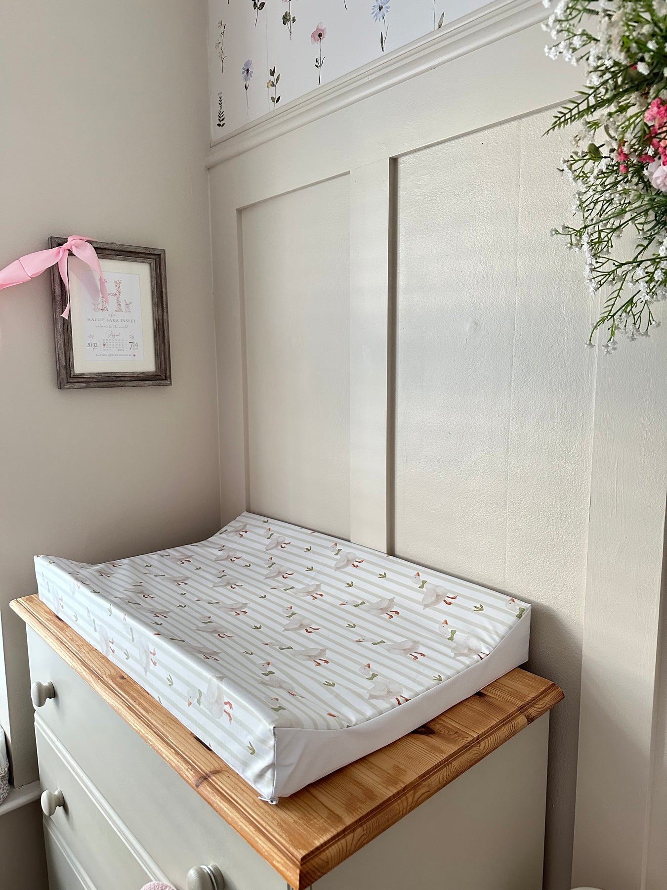 Our Mabel & Fox wedge baby changing mat has been designed with luxury padded foam and raised edges to help your baby feel comfortable and secure during nappy changes.