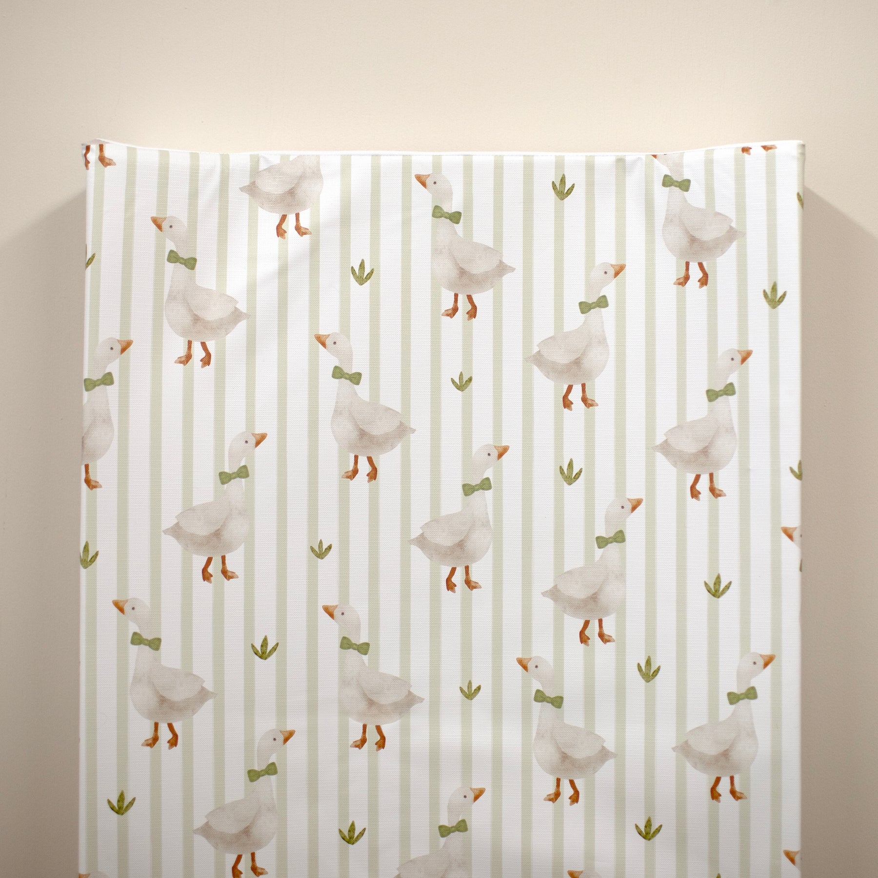Mr Goose: A super cute design featuring adorable geese wearing bow ties, set against a cheerful striped background. The Mr. Goose print adds a fun and charming touch to any space with its playful, endearing style.
