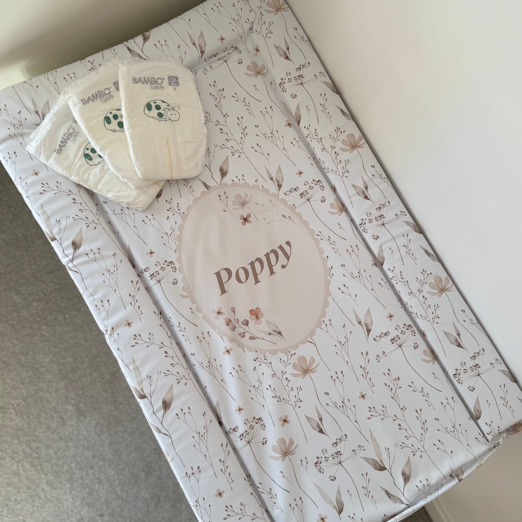 Sample Sale (Personalised - Ava) - Mabel & Fox - Personalised Baby Changing Mat - Natural Wildflowers - Mabel & Fox