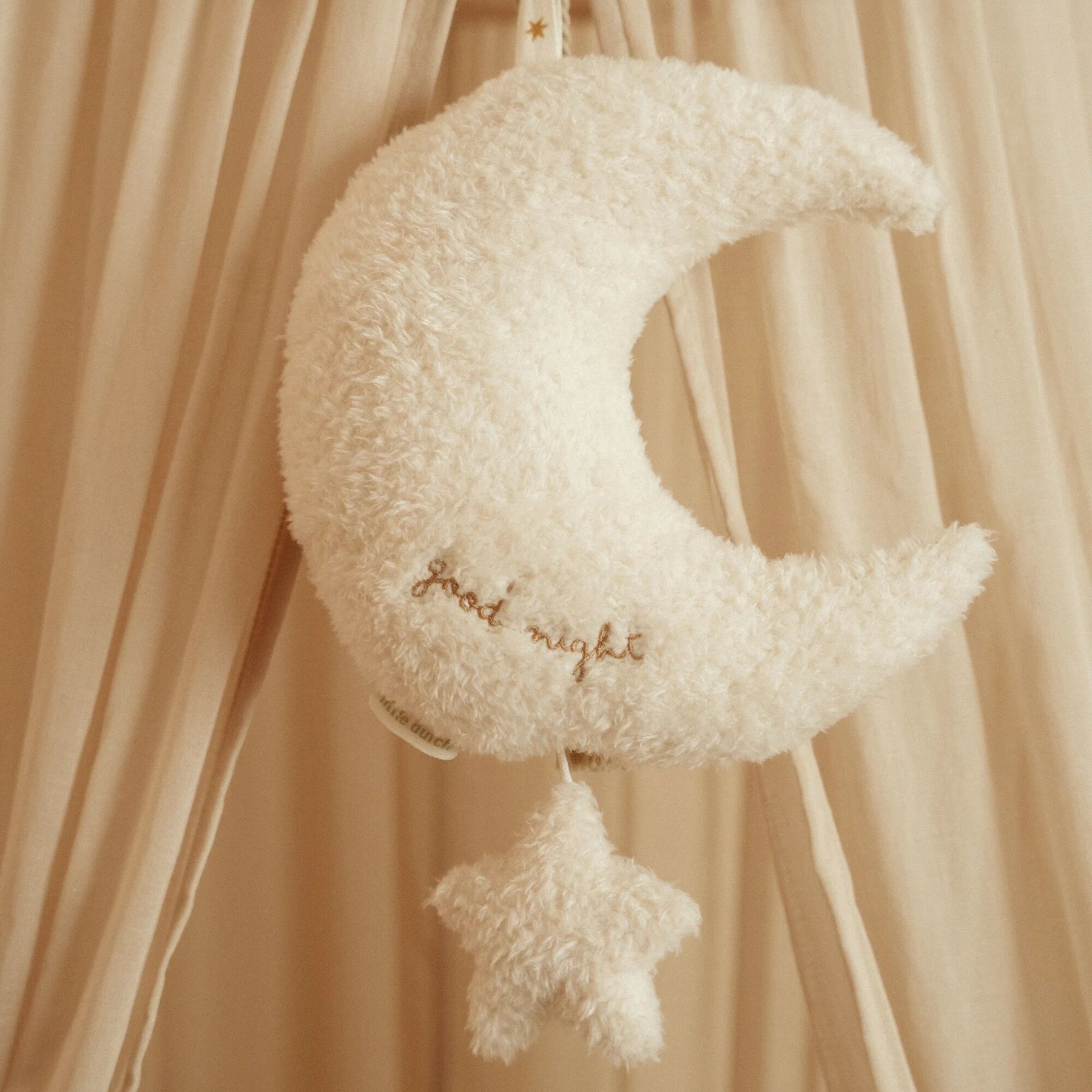 The cozy design, soft materials, and handy hanging system make it a lovely addition to the nursery. A gentle moon watches over your little one, providing a sense of security. Sleep tight, little one!