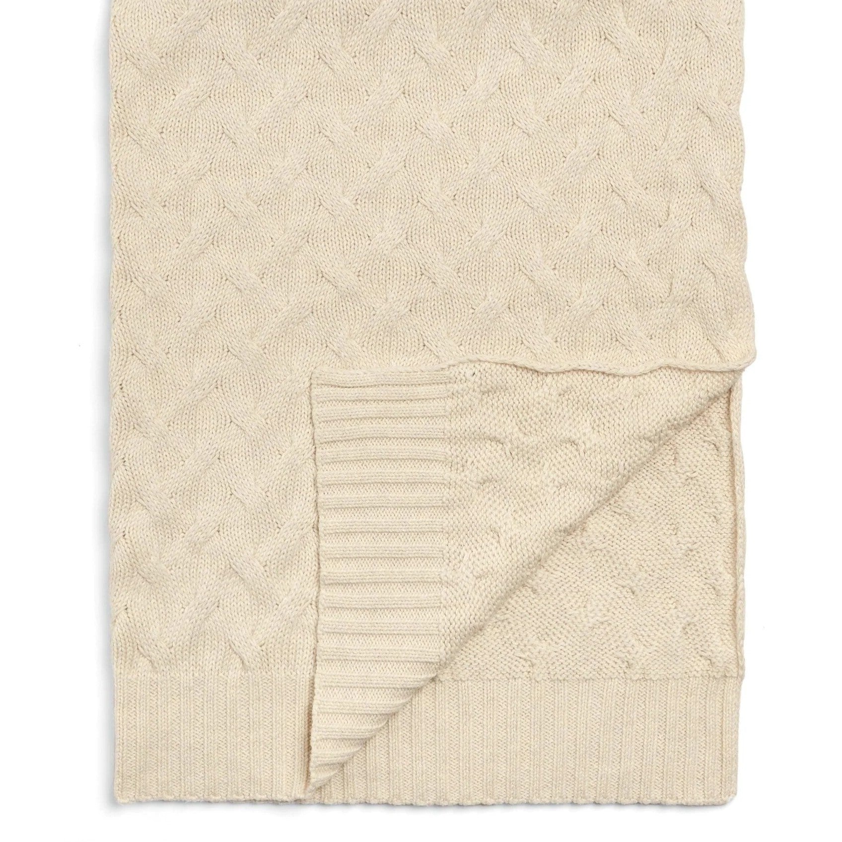 This cosy marled, oatmeal cable knit blanket with detailed knit pattern is perfect cover for any nursery. Made from soft knitted Cotton, it's perfect for those winter days.