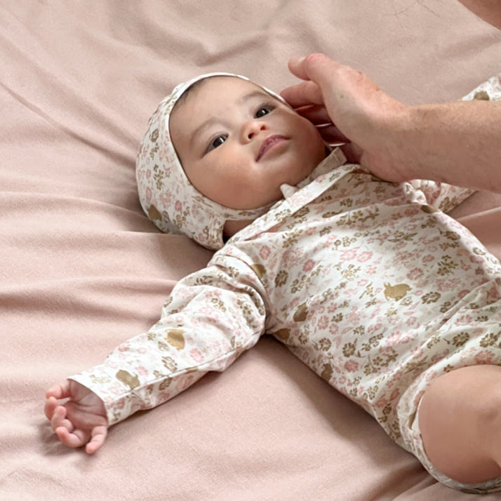 Crafted with the most luxurious, stretchy jersey cotton, this bonnet is a must-have for your little one's delicate skin. Not only will it provide warmth and cosiness, but it will also add a delightful touch to any ensemble! The clever chin ties ensure a snug fit that stays put.