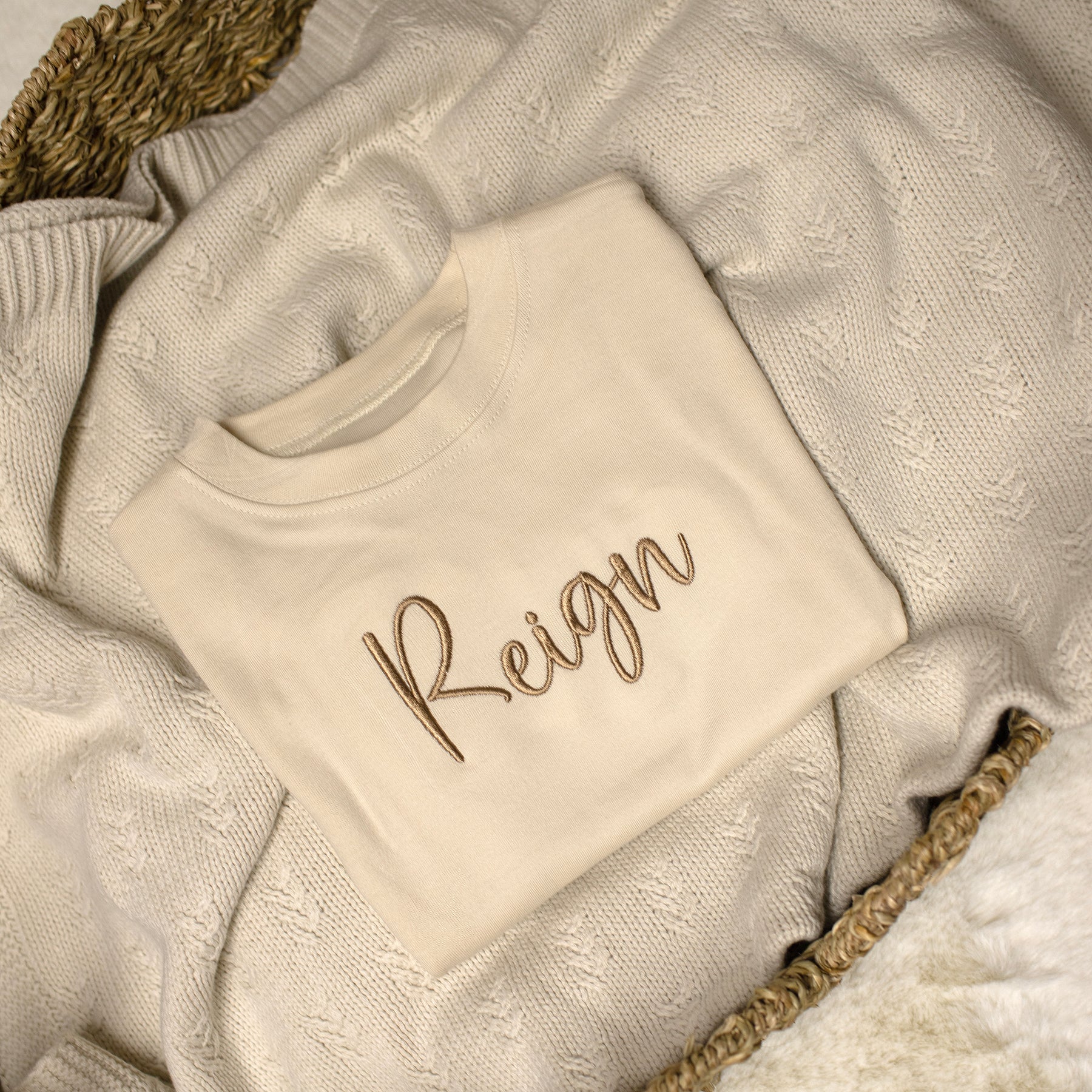 This super-soft Mabel & Fox oat t-shirt is the perfect blend of comfort and charm for little ones. Beautifully embroidered, it can be personalised with any name to create a truly bespoke gift. This lightweight top makes a wonderful present for special occasions or everyday adventures.