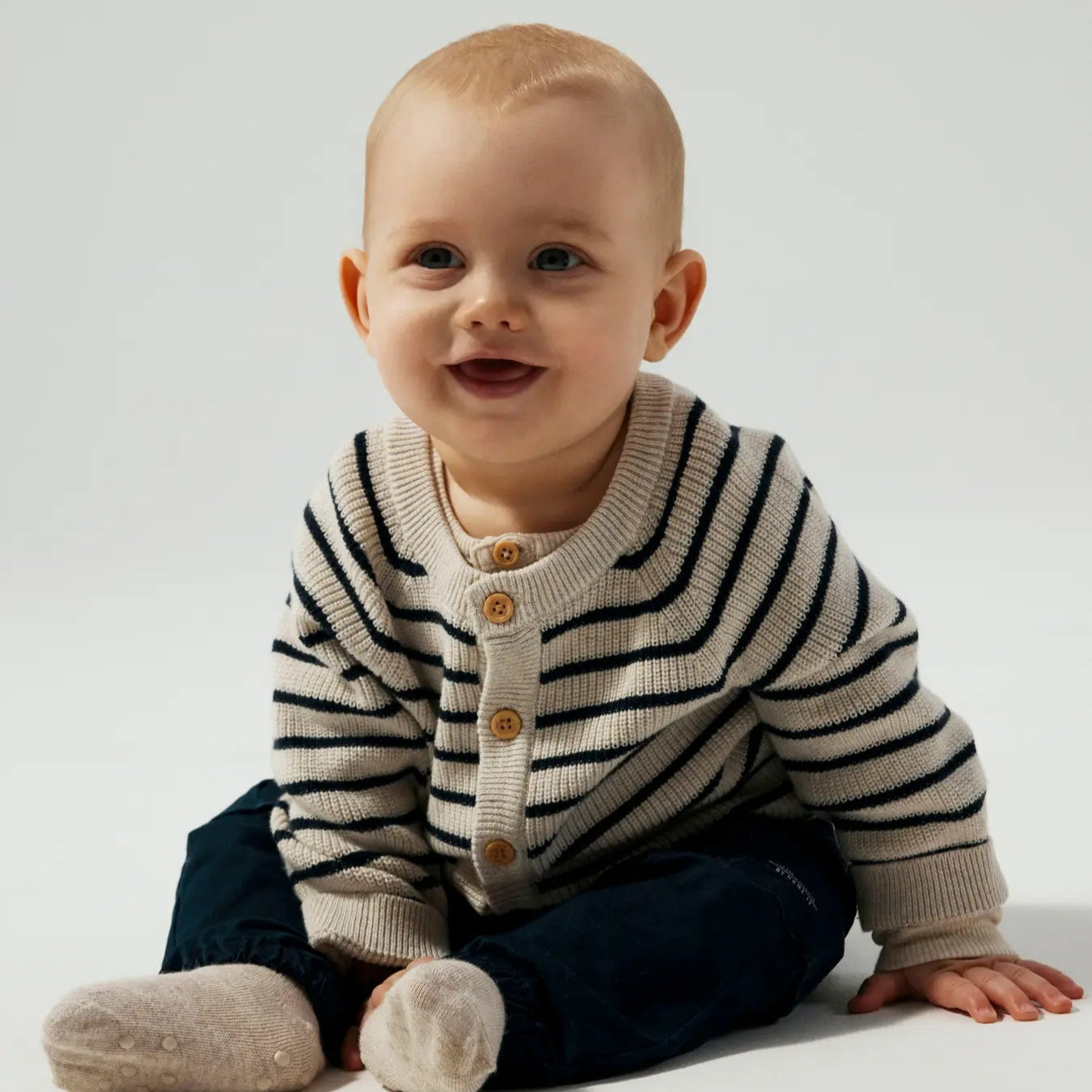 Dress your little one in cozy style with this super soft organic cotton Name It baby cardigan. Featuring a trendy navy stripe and a unique waffle knit texture, it’s the perfect everyday piece to keep them comfy and cute all day long.