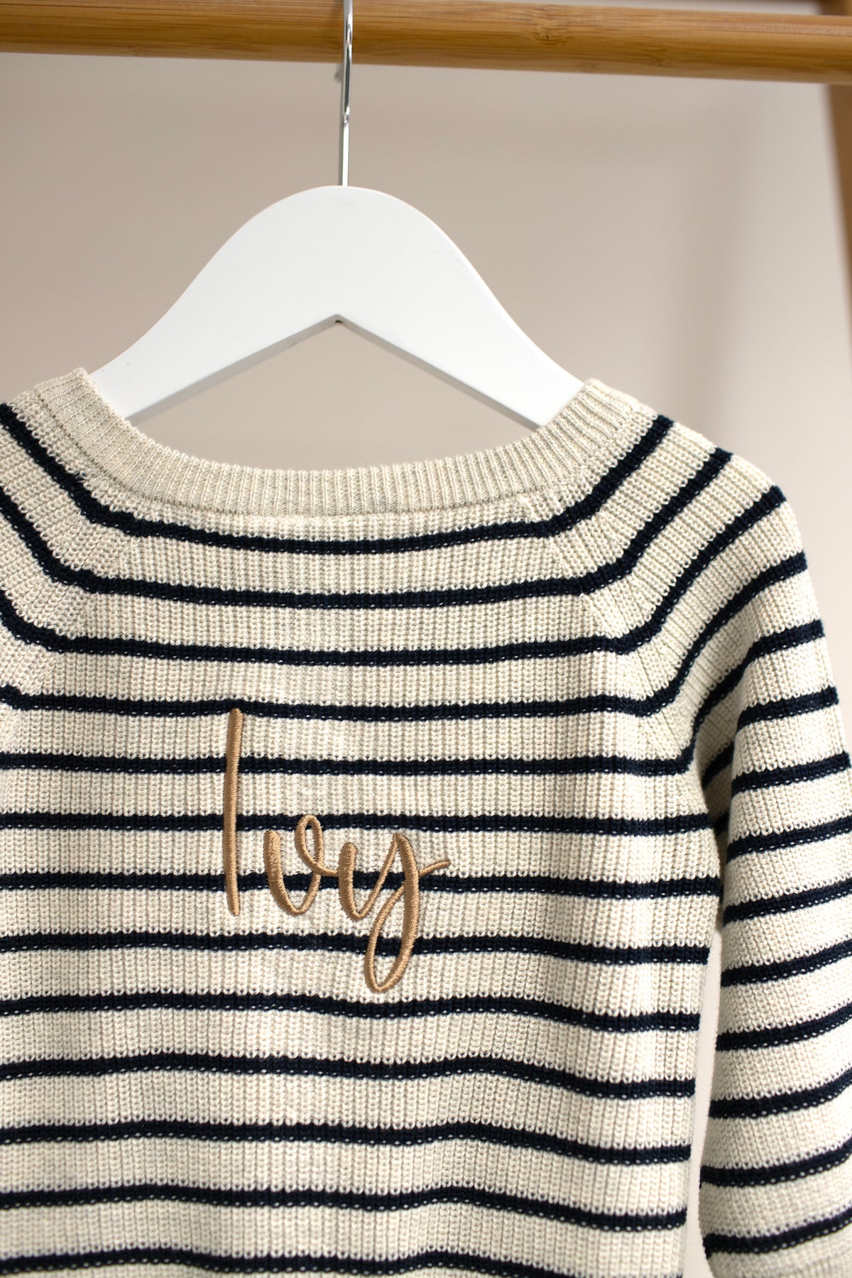 Finished with personalised embroidery on the back, this cardigan becomes a beautifully bespoke piece and a thoughtful gift for a new baby or special occasion.