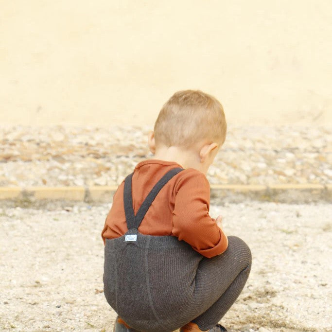 These retro ribbed footed tights with braces by Silly Silas will keep pace with even the most active babies and toddlers. The Dark Grey Footed tights are a blend of blacks and whites, creating a beautiful shade of grey. This popular colour goes well with almost everything!