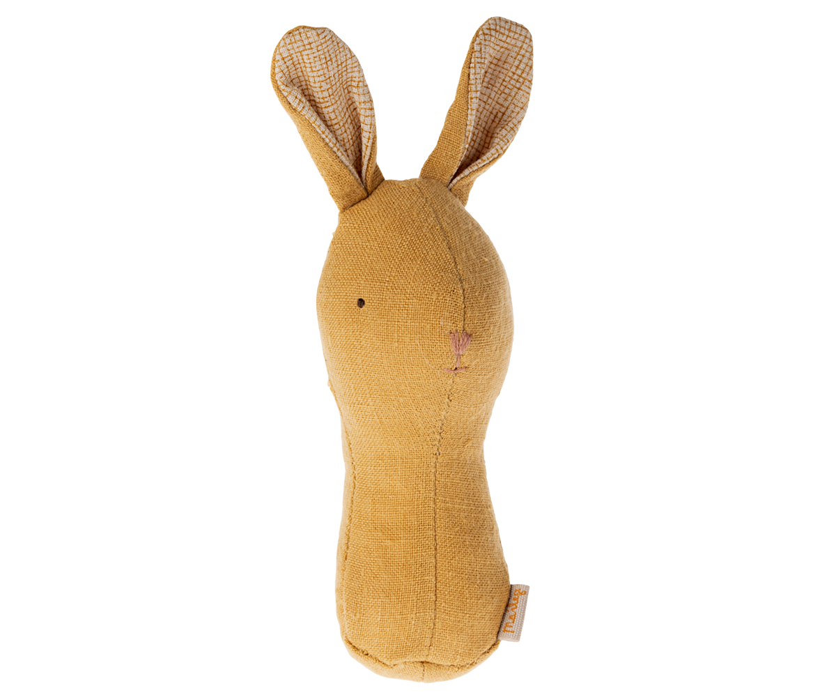 Meet the Lullaby Friends collection with this charming bunny rattle. Sized just right for developing hands, it delivers a delightful tinkling sound that captivates and soothes. Made from plush, gentle fabrics with distinctive artwork and nestled in elegant gift wrapping, it's the perfect companion for quiet moments and playtime alike.