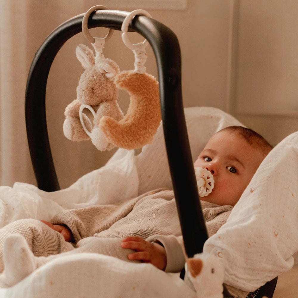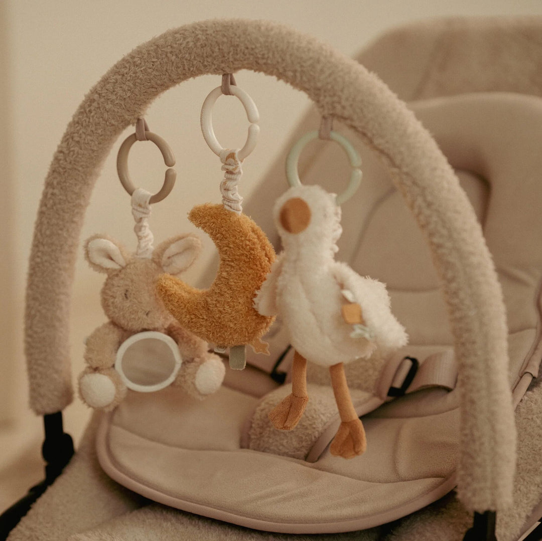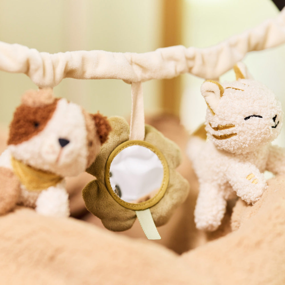 A delightful collection of the cutest toys can be found in our baby toys range. Here you will find toys for at home and on the go; from activity spirals which curl perfectly around the sides of a cot, to pram toys which keep baby happy when you are out and about. A variety of crinkly fabrics and soft textures can be found on animal themed toys, with rattles and squeakers available too to heighten senses and improve dexterity.