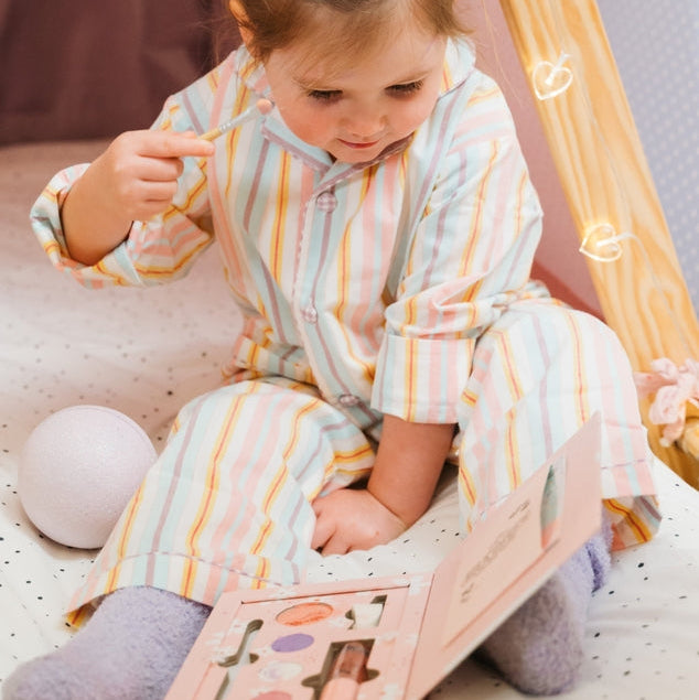 Mess-free pressed powders and natural ingredients make this hypoallergenic, vegan, and cruelty-free set safe for little ones to explore their creativity. A compact keepsake palette with luxe magnet close keeps all the goodies together, making it perfect for playdates or parties.