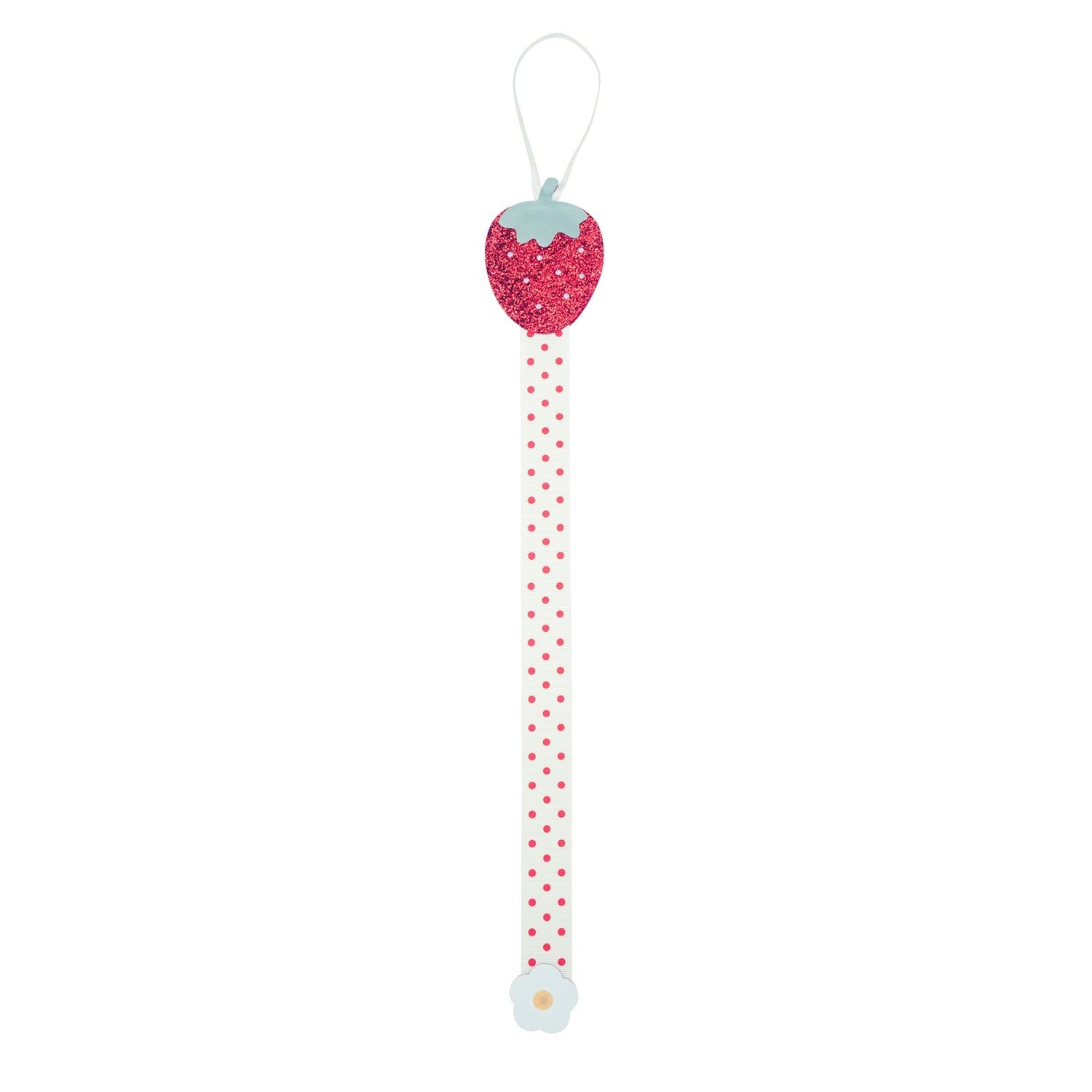 The perfect solution to storing and organising hair clips in one place - Rockahula's clip hanger has a hanging loop that can be hung on a door or wall hook. Simply snap on your clips ready to wear again next time! This strawberry clip hanger can fit around 12 clips (depending on clip size) and hangs perfectly on a grosgrain ribbon!