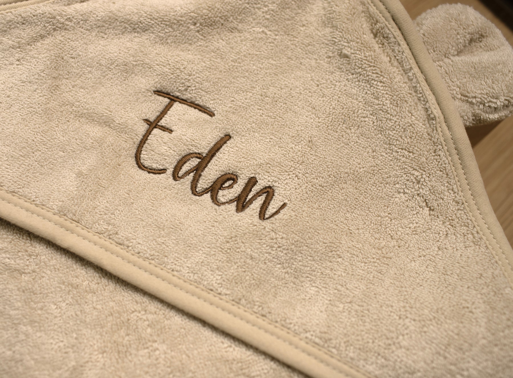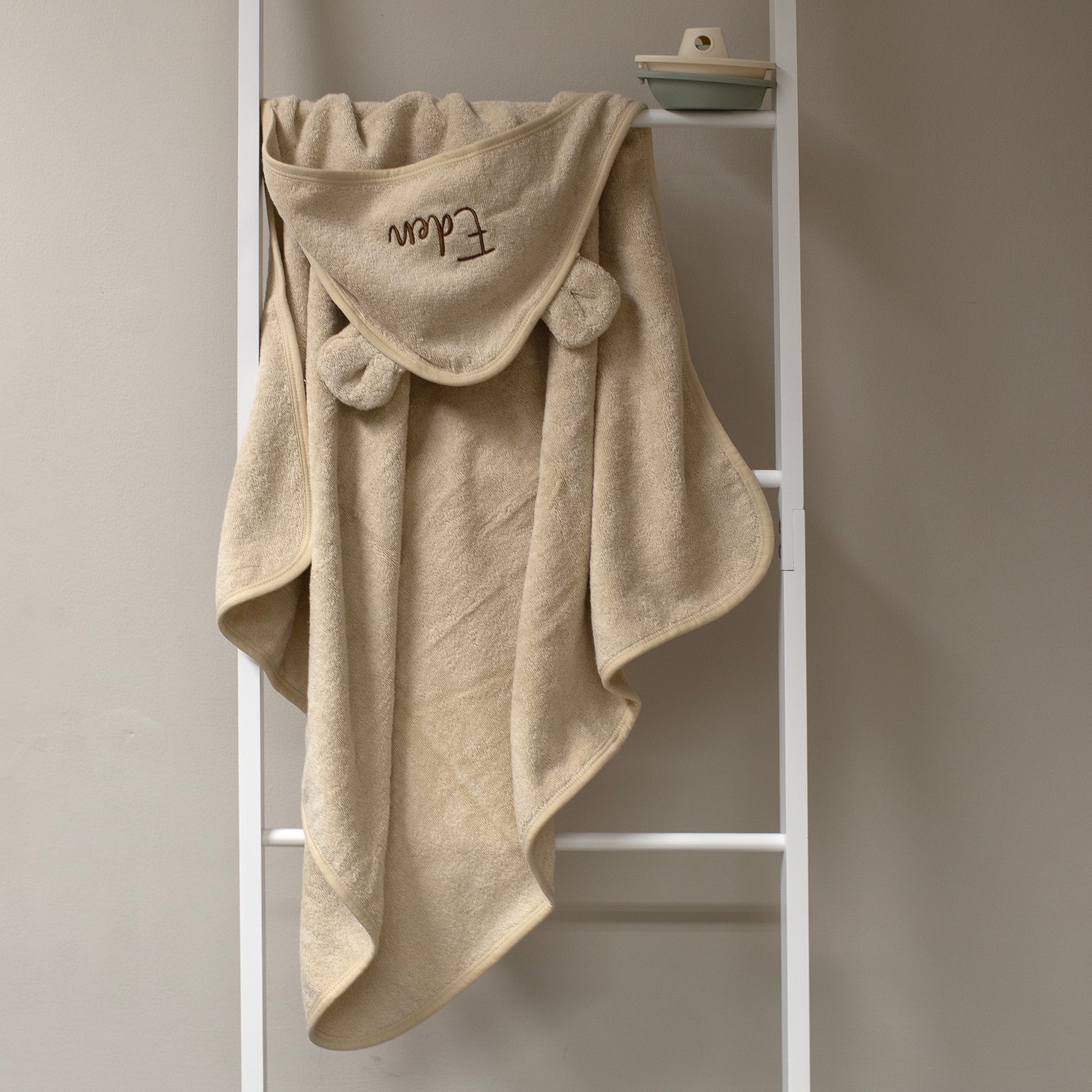 Beautifully embroidered with your child’s name on the hood, it’s a thoughtful bespoke touch that makes every towel truly unique. Featuring adorable little ears and a neutral beige shade, it’s the perfect blend of practicality and charm - a beautiful keepsake gift parents will treasure.