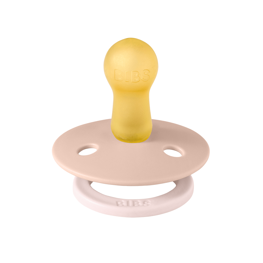 Bibs colour pacifier is their original pacifier design, featuring the classic shield and round nipple. Bibs pacifiers are designed to help calm and soothe your baby, lower stress levels and provide a sense of security when they're upset. The colour pacifier features three vent holes, a round engraved handle ring and made from lightweight 100% safe and food-grade material.
