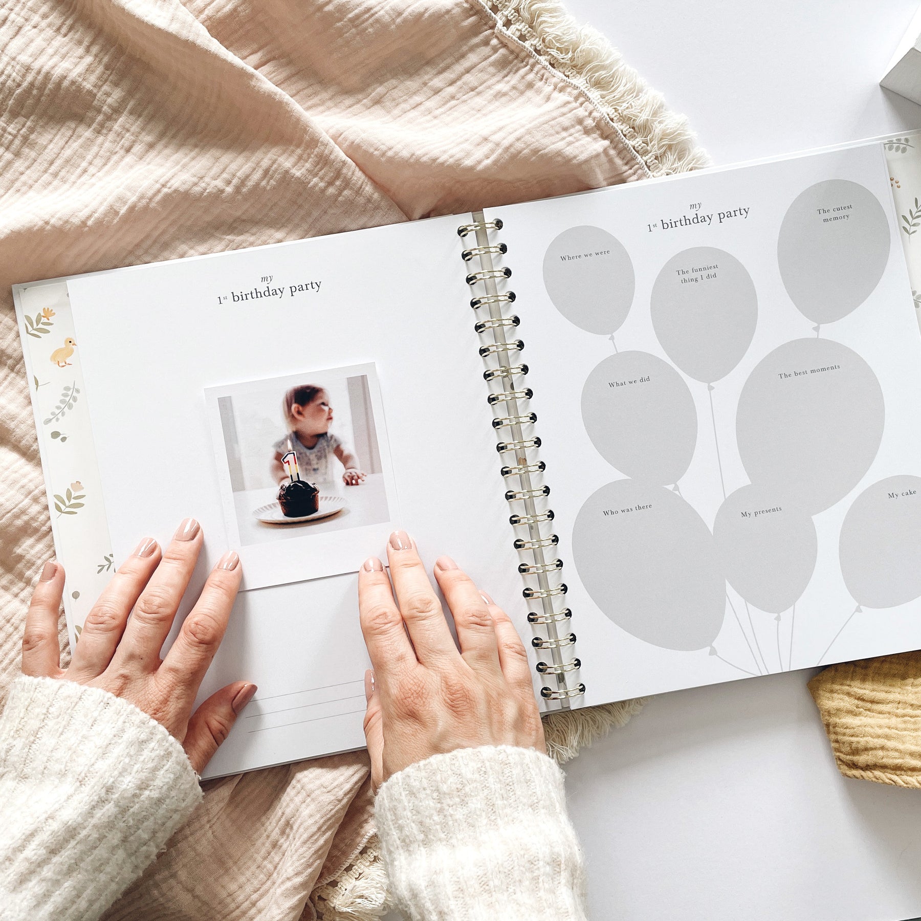 There is plenty of space to write down your baby's first words, steps and tantrums, and enough prompted pages so youre not stuck for ideas for things to write, whilst leaving enough room for you to add your own content. Additionally, the book has concealed Wire-O binding (which allows for more photos to be included in the book), and finished with a presentation box.