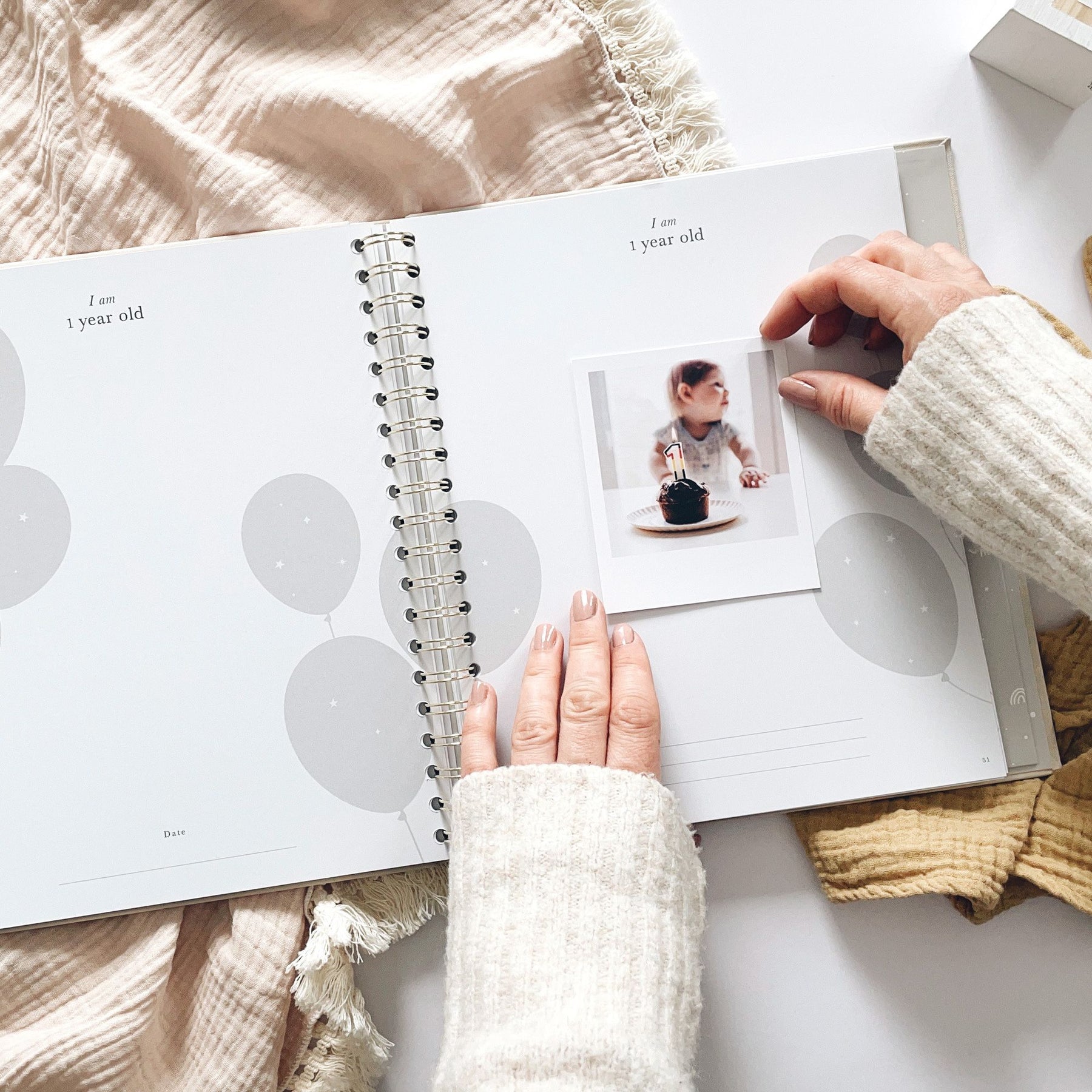 There is plenty of space to write down your baby's first words, steps and tantrums, and enough prompted pages so youre not stuck for ideas for things to write, whilst leaving enough room for you to add your own content. Additionally, the book has concealed Wire-O binding (which allows for more photos to be included in the book), and finished with a presentation box.