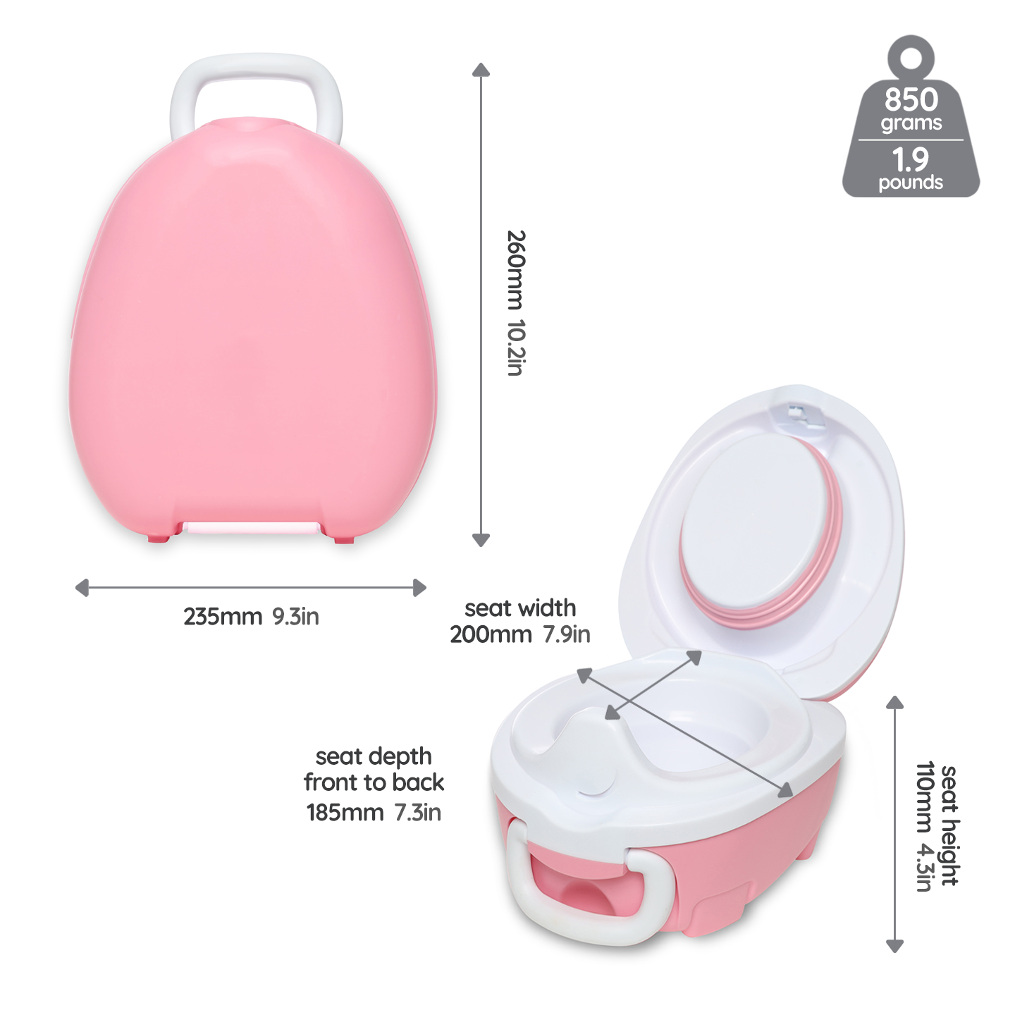 With a completely watertight lid, durable plastic shell, and lightweight body, this clever potty travels effortlessly — from nursery runs to holidays and every adventure in between. Toddlers love taking charge with the personal carry handle, while the spacious seat and non-slip feet help them feel safe, secure, and ready to try by themselves.