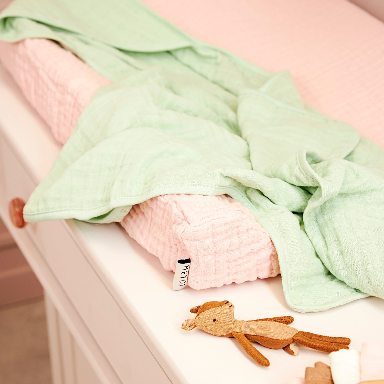 Wrap your changing mat in the super soft Meyco Baby pre-washed muslin cover, making every change cosy and comfortable for your little one.
