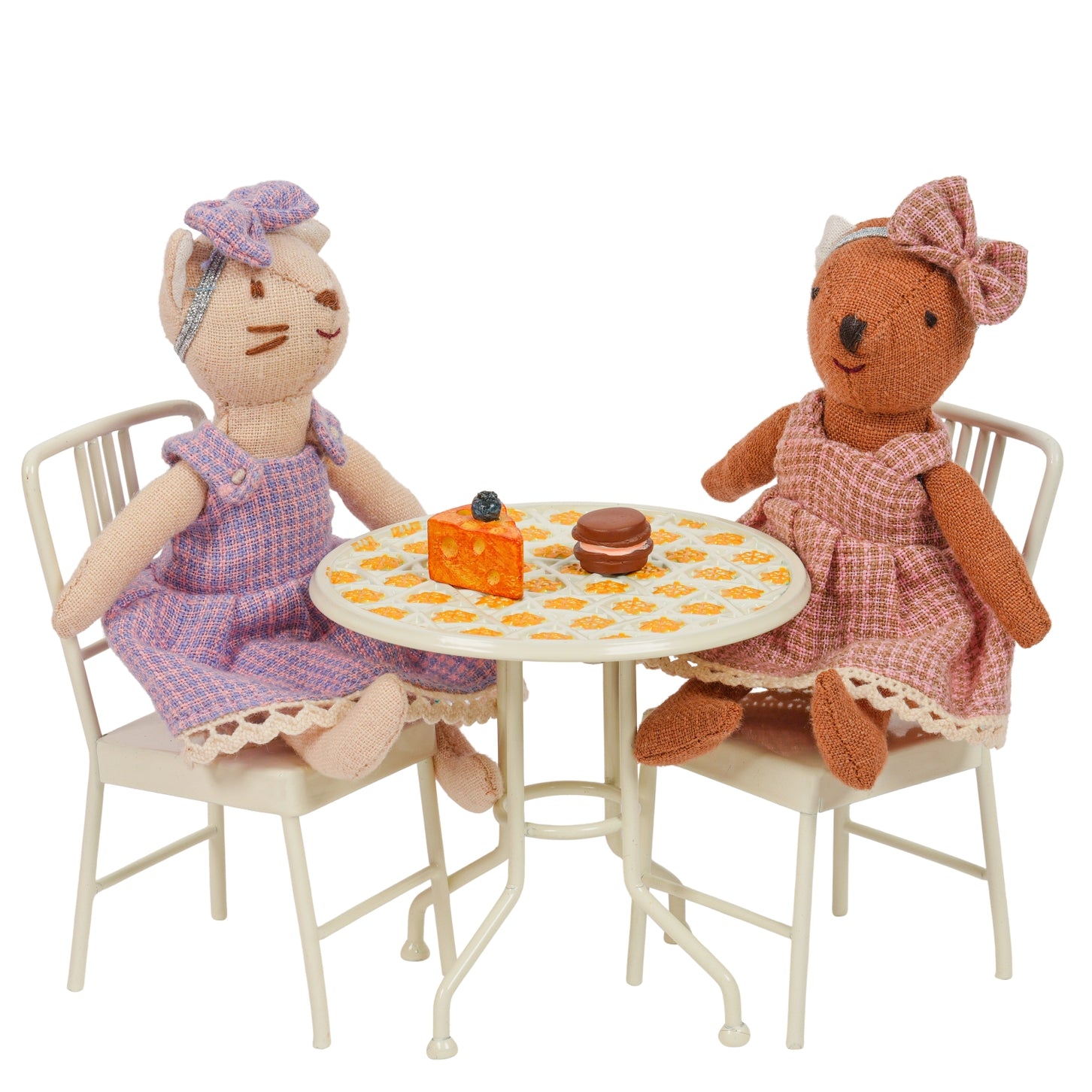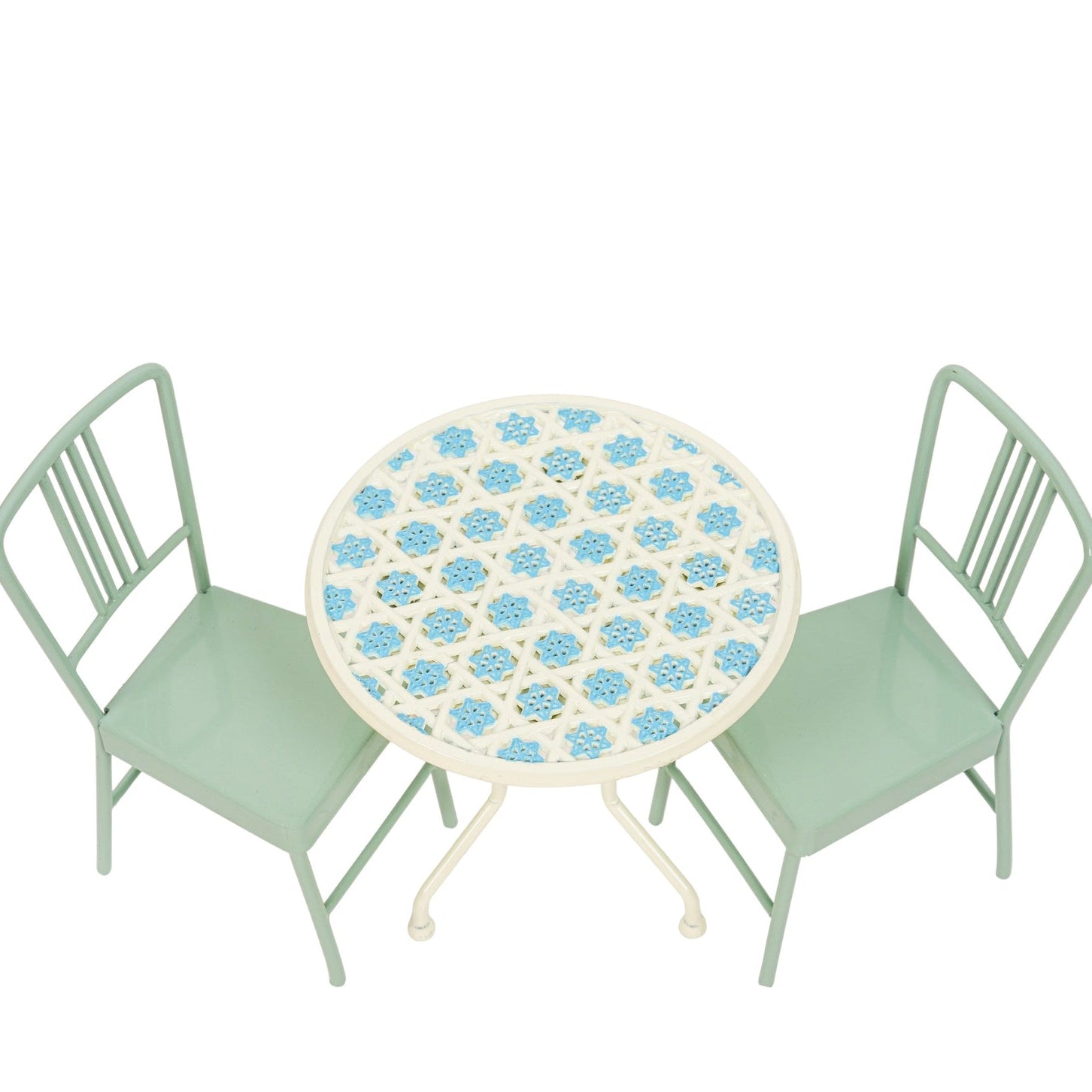 Bring a touch of timeless charm to your miniature world with Levlovs’ Table & Chairs Set. Crafted from sturdy metal with a soft ivory finish, this petite café set invites your dolls or animals to share tea, cake, and cozy conversations. The round tabletop features a delicate vintage yellow floral pattern, echoing sunny garden mornings and nostalgic afternoon picnics.