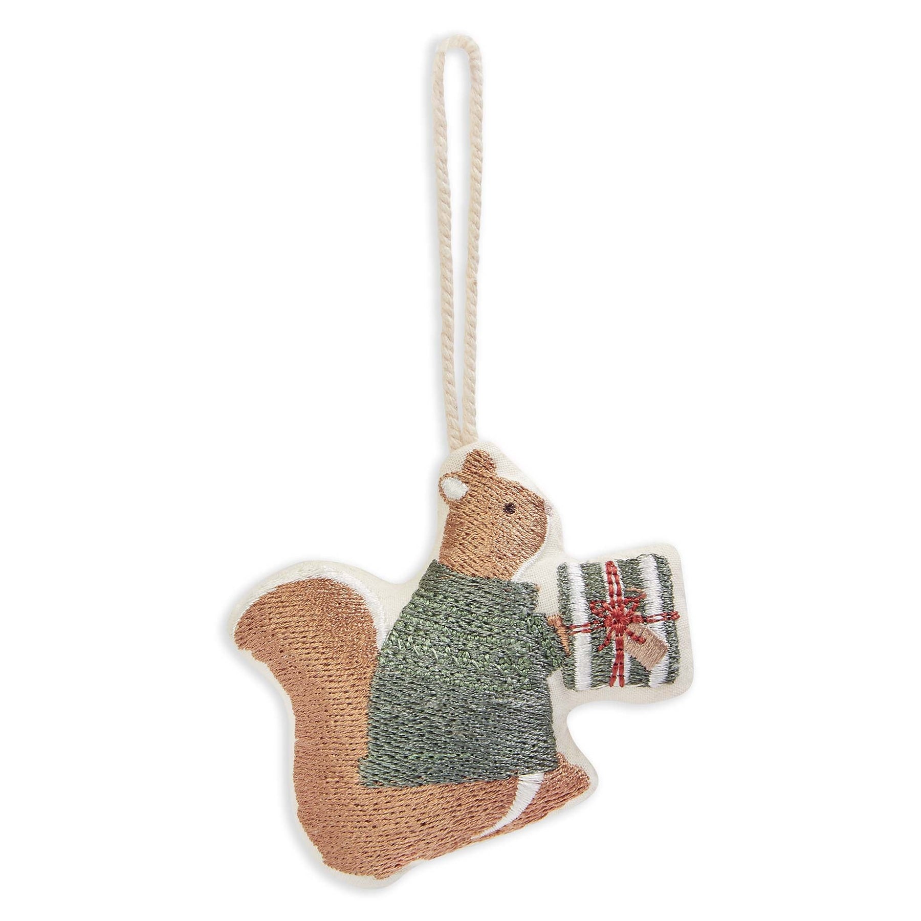 This single embroidered organic cotton tree decoration by Avery Row will add a touch of fun to any Christmas tree. In the shape of an adorable Squirrel delivering gifts, these beautiful Christmas Decorations are marvellously festive!