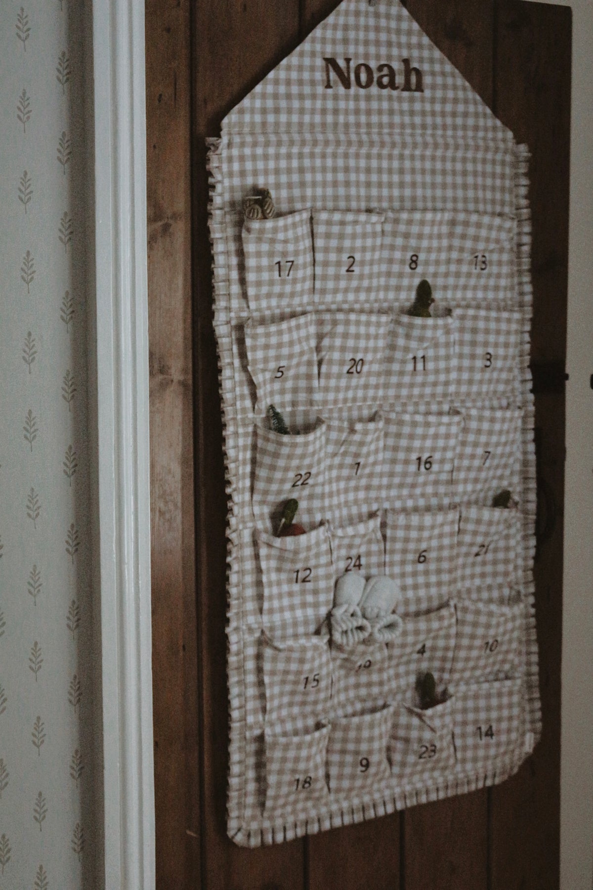 Countdown to the most wonderful time of the year with a Mabel & Fox's Personalised Beige Gingham Ruffle Advent Calendar! This beautiful calendar features a stylish ruffle edging and personalised embroidered name, making it the perfect bespoke addition to your festive decor.