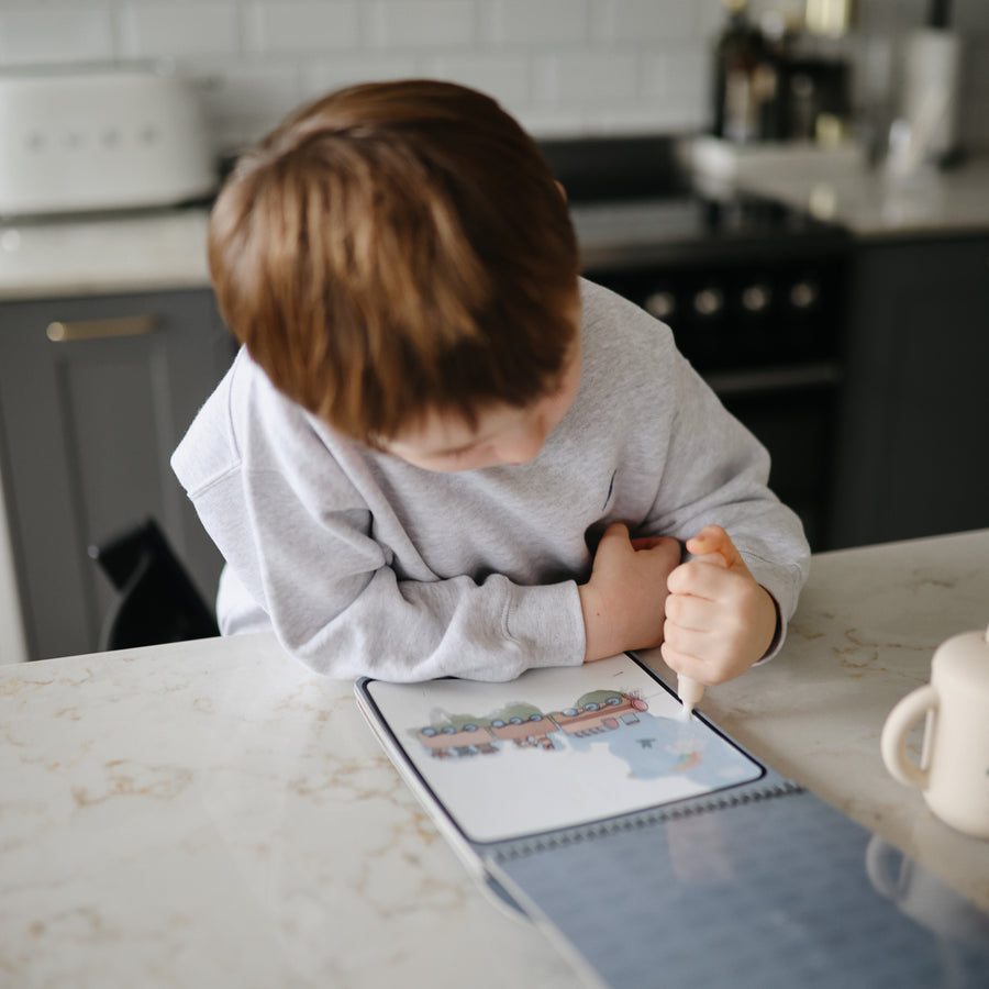 Buckle up for creative adventures with this Mushie water colour pad featuring four pages of planes, trains, and automobiles waiting to be discovered.