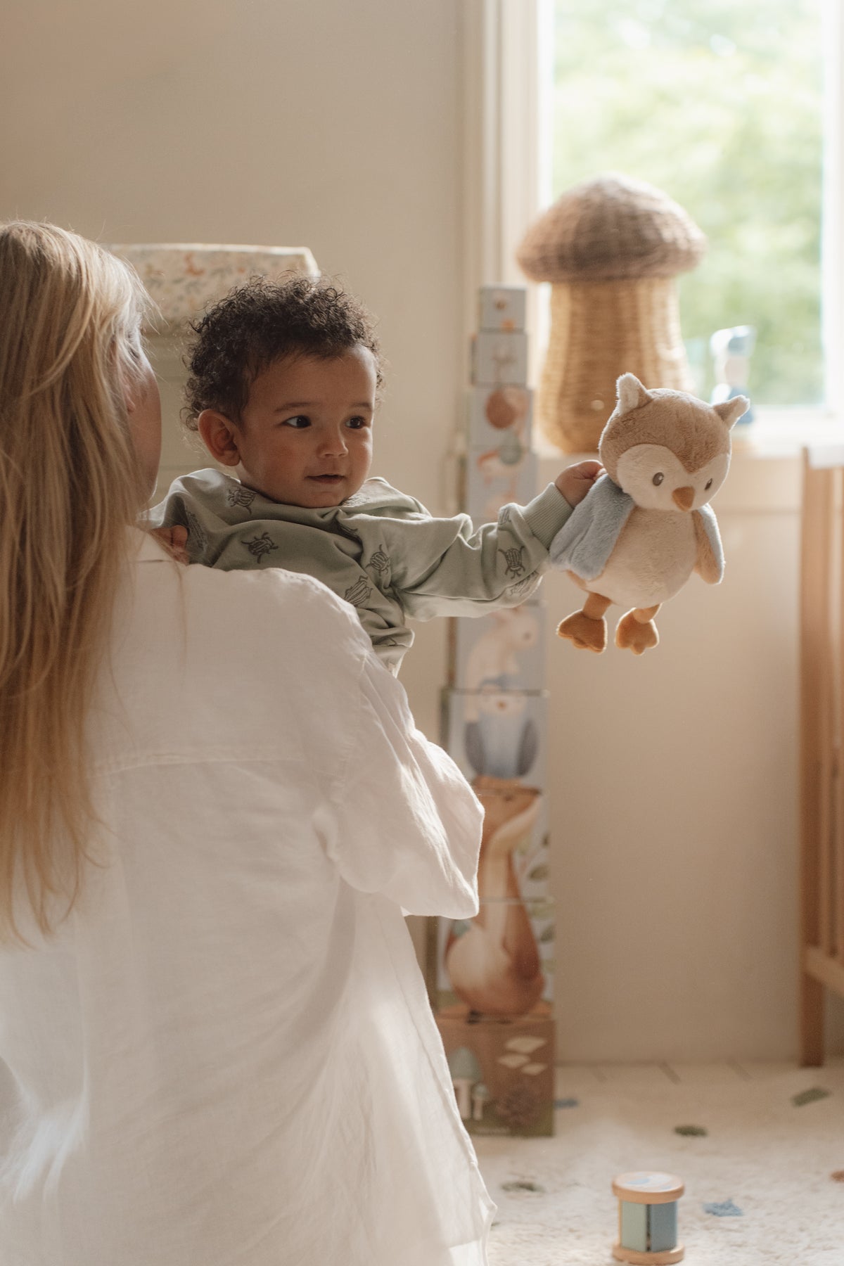 This sweet little owl from the Little Dutch Forest Friends collection loves to hug and play. His soft fur is perfect for cuddles. Imagine going on adventures together as he spreads his wings, flying to the tallest tree in the enchanted forest, where every branch holds a new story waiting to be discovered. After a day filled with play, the lovely owl will snuggle up with you at bedtime and fill your dreams with cozy warmth and comfort.