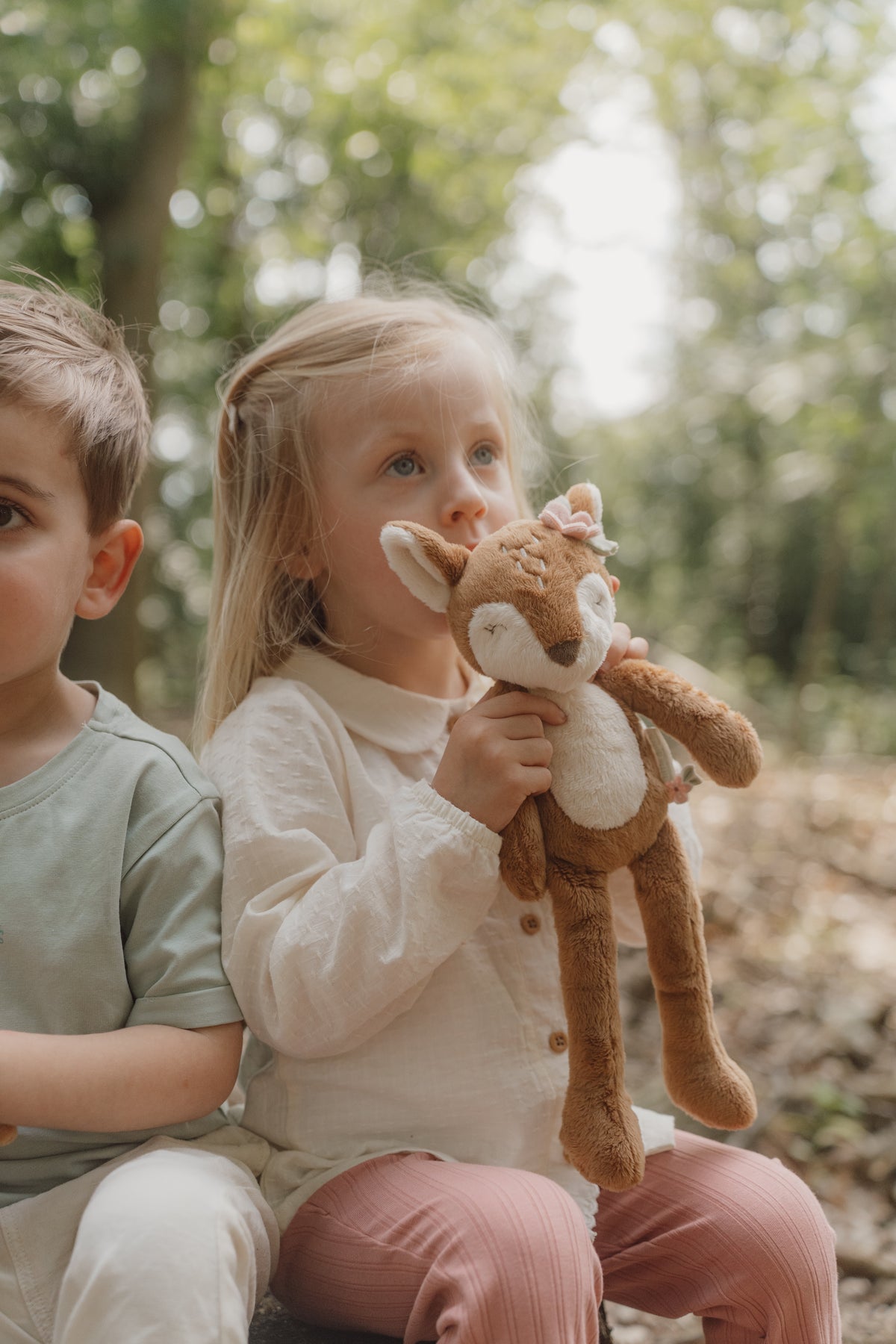 Come and give this Little Dutch cuddly deer a hug! With her lovely grin and open arms, she invites you for cuddles and play. Her charmingly long legs make it easy to carry her with you, no matter what the day brings. She will go on adventures with you, into the magical Fairy Garden, and sit beside you during story time. Whether exploring the beautiful outdoors or cozying up for naptime, this cuddle deer is always ready to accompany you on your journey of imagination and discovery.