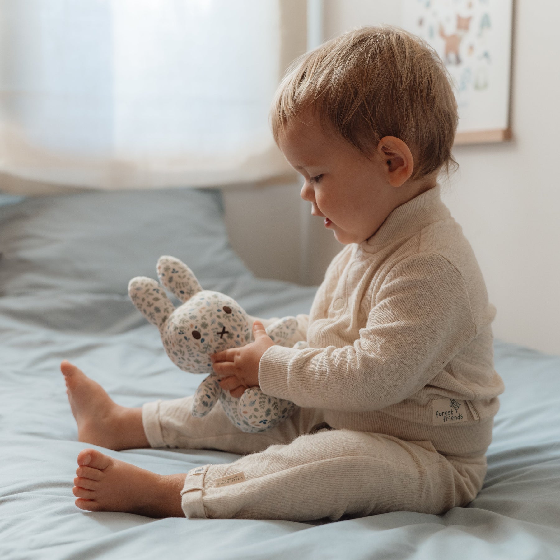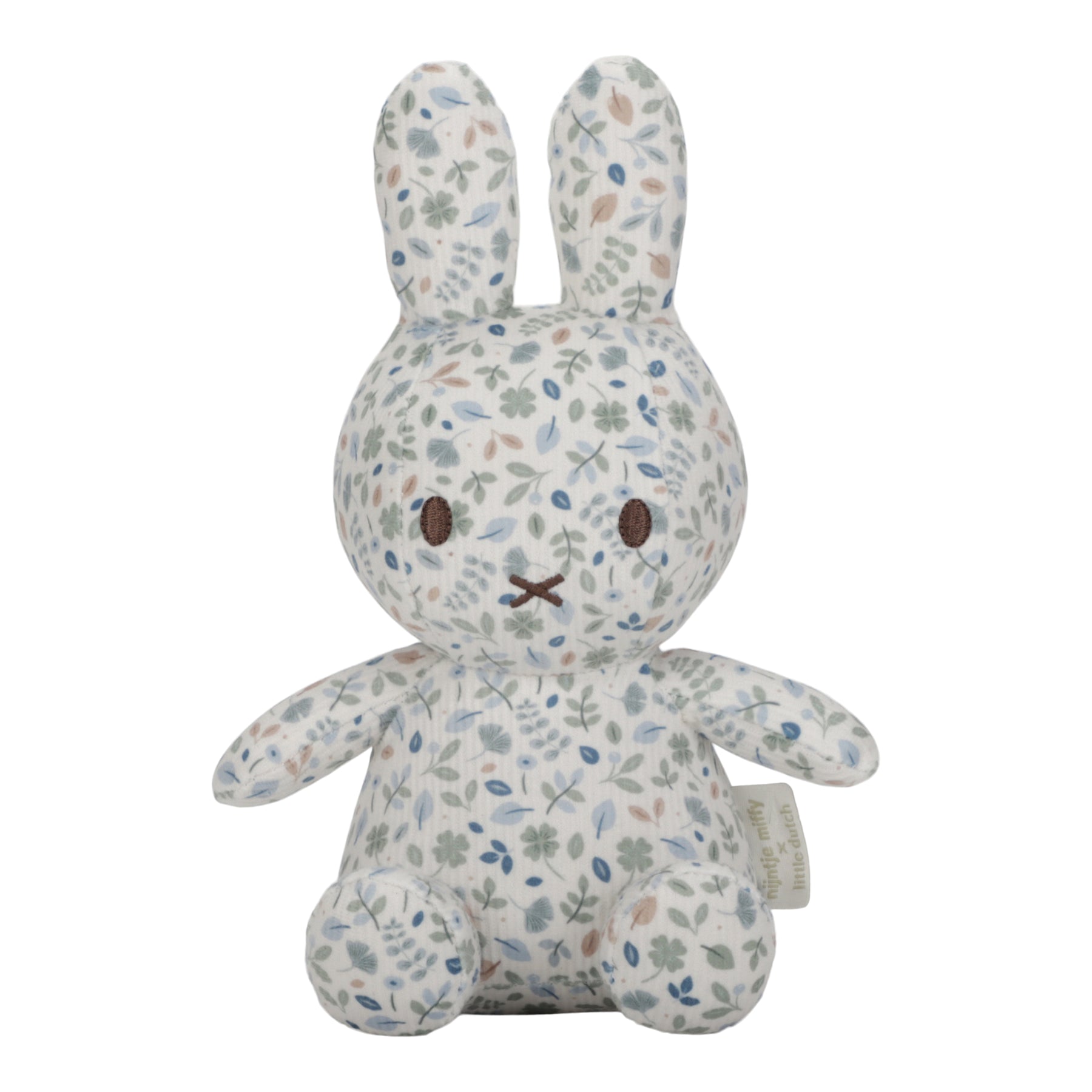 Ready for a hug? This little Miffy is waiting for your little one to snuggle and cuddle. She's incredibly soft and the perfect size to bring along on every adventure. Covered in an all-over print of Lucky Leaves, this cuddle toy is the loveliest Miffy of all! It's soft with a retro appearance and brightens up your day. An icon bunny that no nursery can do without!