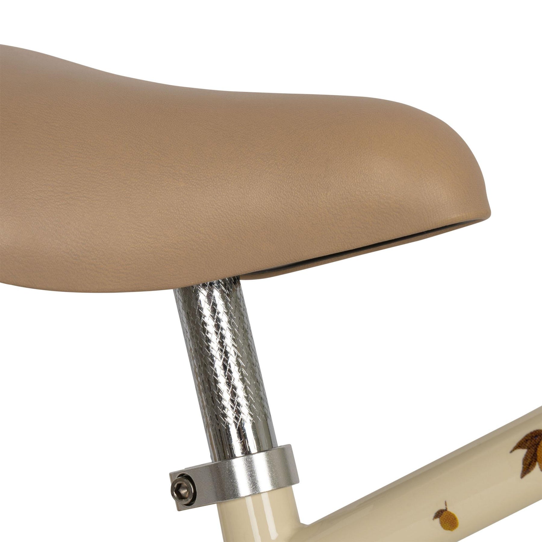 Take me for a spin!. Meet Konges Slojds balance bicycle for new little cyclists that want to learn how to ride. A lightweight design with a sturdy steel frame that is easy to ride and light to carry when those little feet get tired. Materials: Frame and bell made of steel. Handle and seat made of artificial leather. Wheel made of rubber. Basket made of wicker.