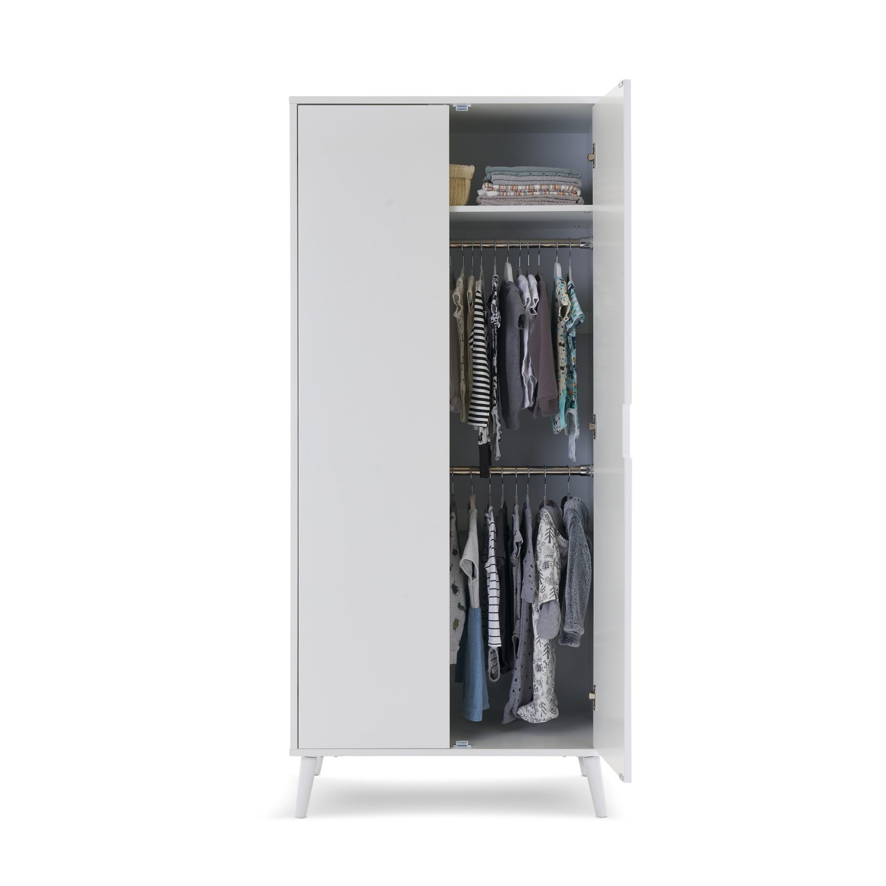 Completing the room set is the Maya double wardrobe. Putting style and functionality at the forefront, it offers the ideal storage solution for your little one’s clothes. The large cupboard space features two hanging rails and a single full width shelf, all fronted by double soft-close doors with recessed handles. Putting your baby’s adorable outfits away has never been easier.