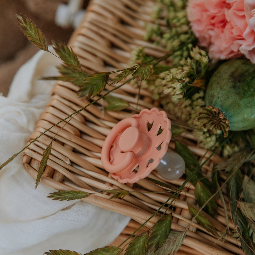 - 1 pc. FRIGG Daisy round pacifier in the color: Baby Pink