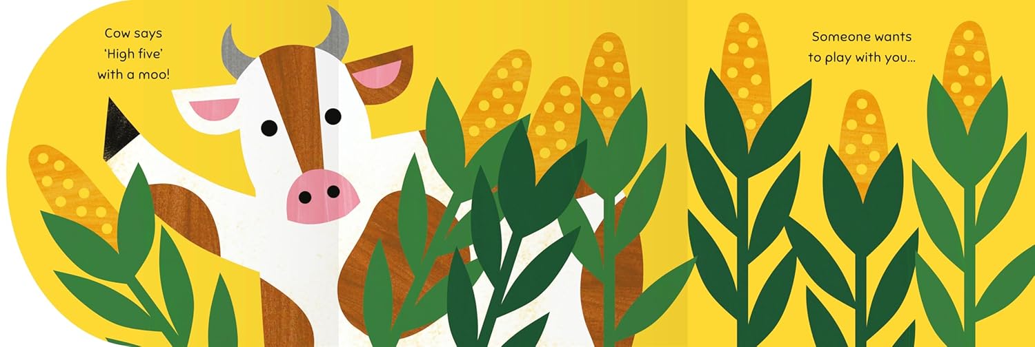 Journey through the farm and high-five animals as you go, in this fun interactive board book with flaps and a mirror!