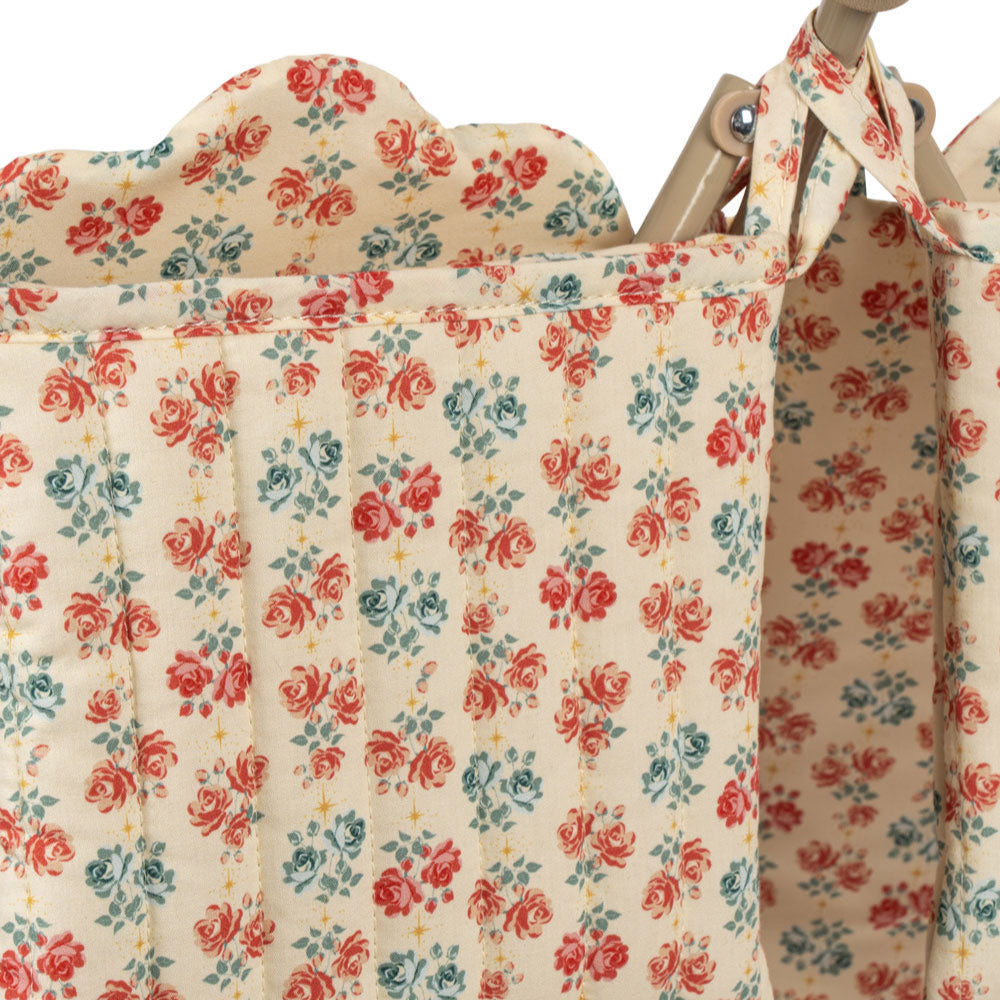 Designed for two, it’s perfect for side-by-side outings, letting dolls ride in style while little caregivers proudly take the lead. The sturdy frame and smooth-rolling wheels make every pretend stroll effortless, while the scalloped floral seats add a touch of vintage sweetness. Lightweight and easy to fold, it’s ready for playtime on the go—whether at home, in the park, or on a big imaginary adventure.