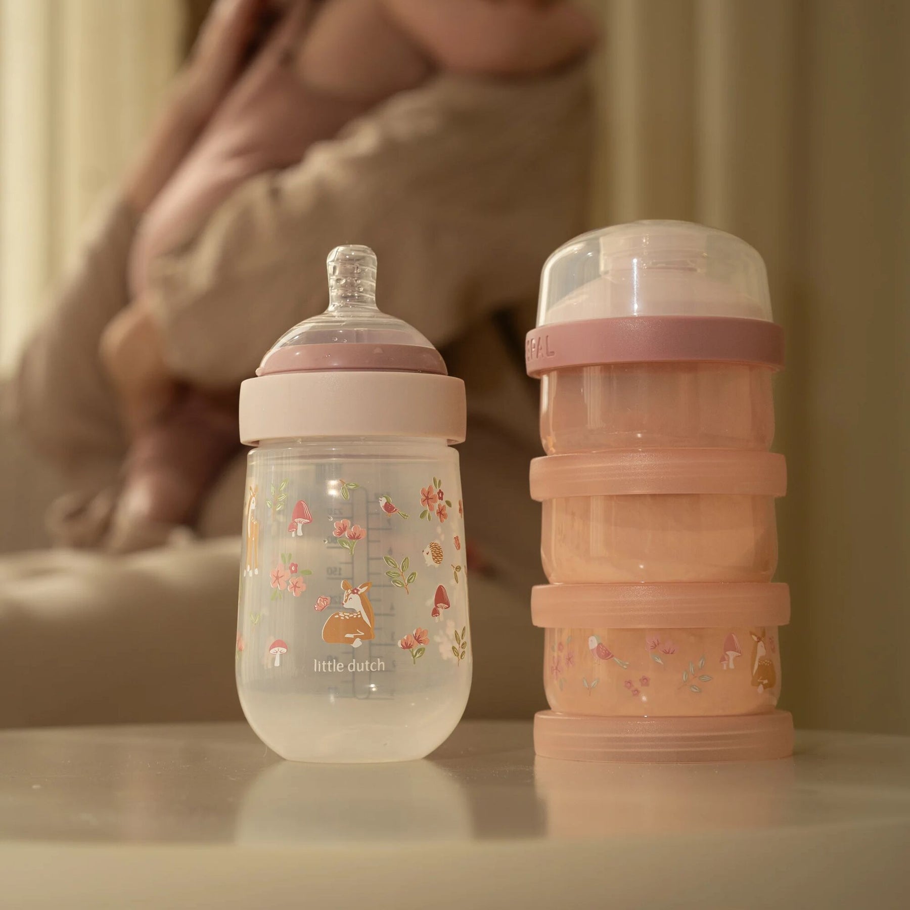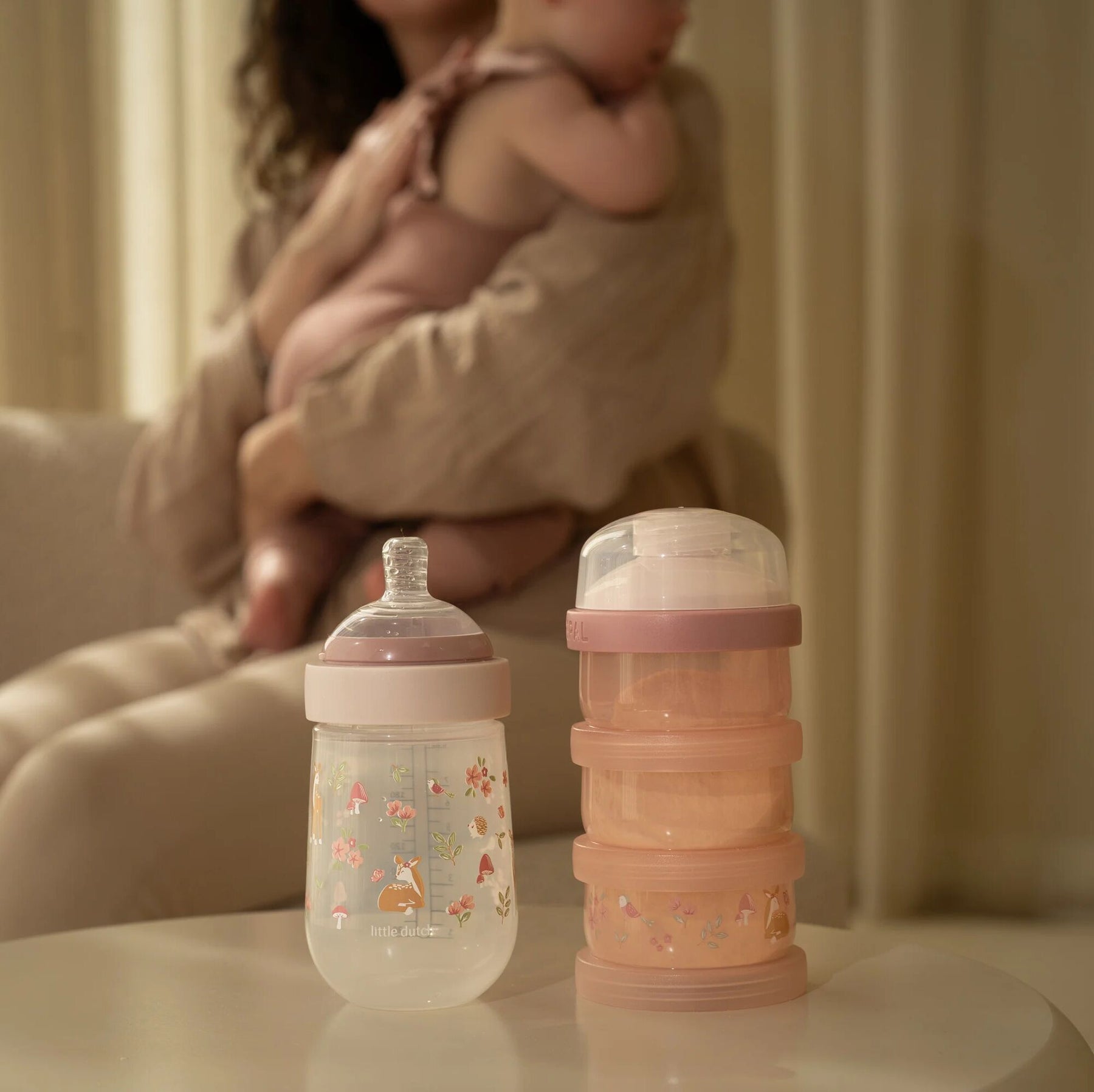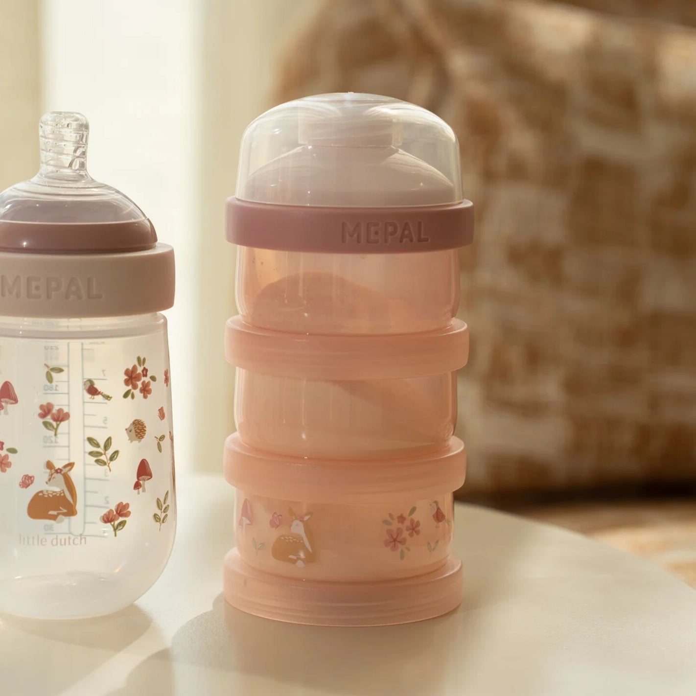 The 3-piece milk powder tower is ideal for carrying milk powder. With three stackable compartments and a handy pouring cap, this tower is compact, practical and dishwasher-safe.