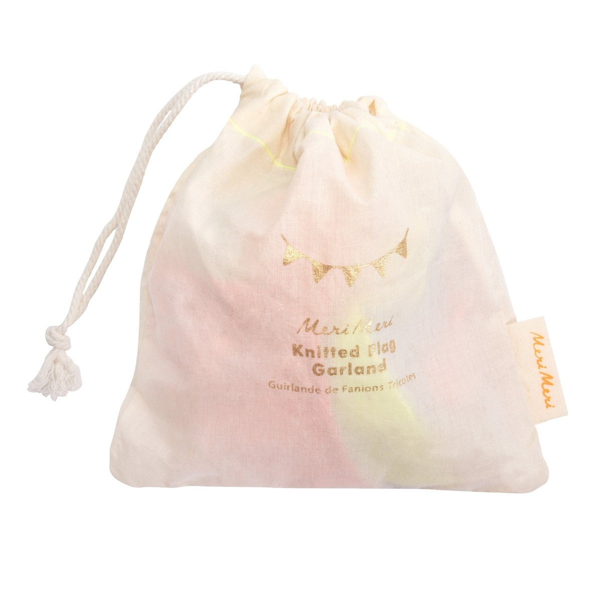 Whether you're planning on decorating a wall, a bookcase or a bedpost, you'll love the effect this beautiful garland gives. The knitted organic cotton flag pennants are a variety of brilliant bright shades. They come with a handy drawstring bag for storage.
