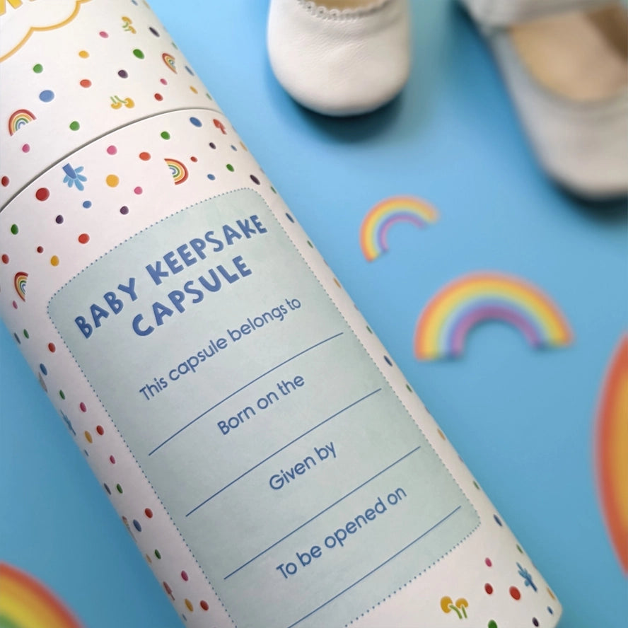 Capture your baby's momentous milestones with the Baby Time Capsule - Elmer. Presented in a gift box featuring the iconic Elmer the Elephant artwork this set includes - 3 keepsake envelopes, height & weight charts, mini photo album, mini record book, hand & foot print chart, baby's first scribble pad & a keepsake trinket box.
