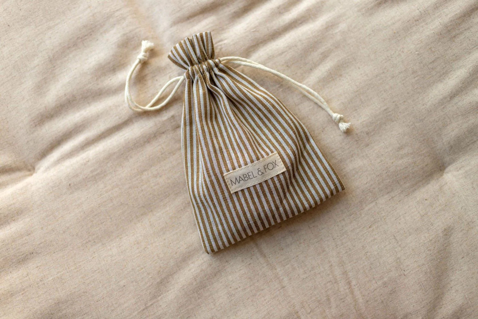 Introducing Mabel & Fox's Personalised Wooden Brush Set, a must-have for babies. Featuring three high quality wooden brushes, paired with a beautiful reusable brown striped bag for added convenience. The wooden bristle brush is engraved with your choice of any name, while the matching goat hair brush has a complimentary bow illustration.