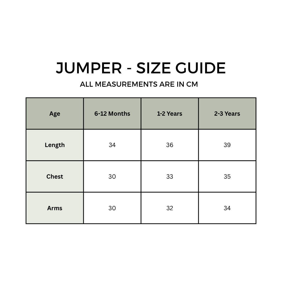 • Available Sizes: 6-12 Months / 1-2 Years / 2-3 Years.