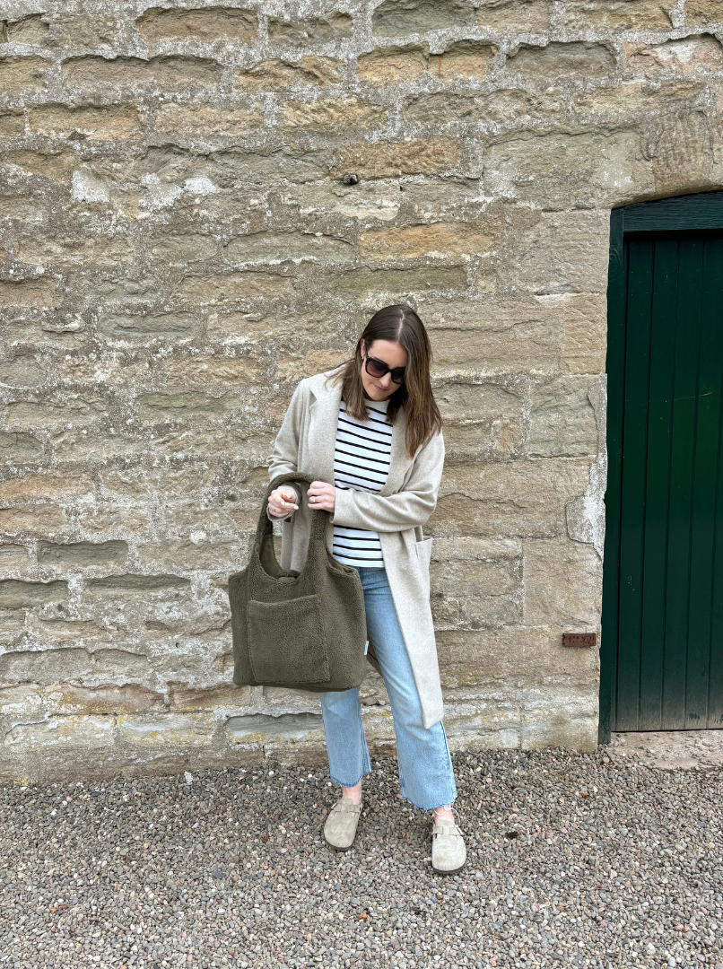 Add a touch of style and functionality to your everyday look with the Mabel & Fox Teddy Tote Bag. Made from super soft teddy bear material, this beautiful forest coloured bag is the perfect finishing touch to any outfit. The flat base provides generous space, making is a versatile option from changing bag to a weekend away, you'll be ready for any adventure.