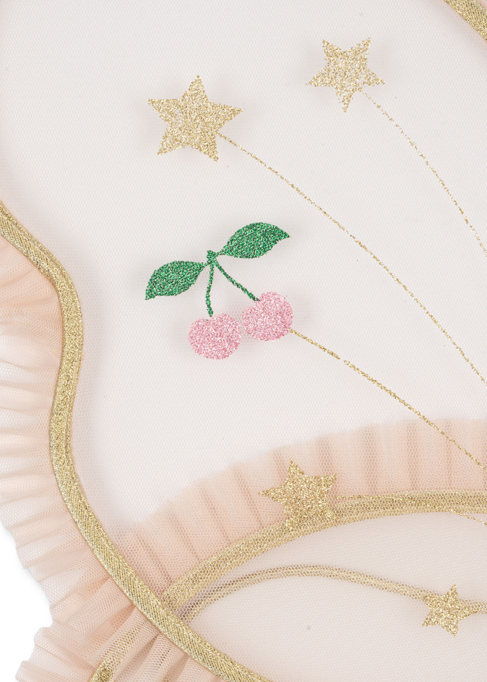 Bring enchantment to playtime with the Konges Slojd Fairy Frill Costume in Brazilian Sand. This delightful set includes delicate wings and a magical wand, perfect for sparking imagination and fairy-tale adventures. Designed with soft elastic straps for the arms, it’s easy for little ones to slip on and twirl around in comfort. Whether for dress-up, parties, or everyday magic, this costume invites endless fun and whimsy. Let your child’s creativity take flight with this charming fairy outfit!