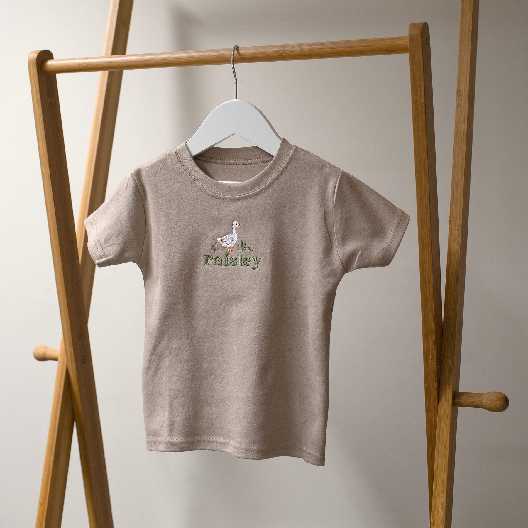 This super-soft Mabel & Fox brown t-shirt is the perfect blend of comfort and charm for little ones. Beautifully embroidered with a goose design, it can be personalised with any name to create a truly bespoke gift. This lightweight top makes a wonderful present for special occasions or everyday adventures.