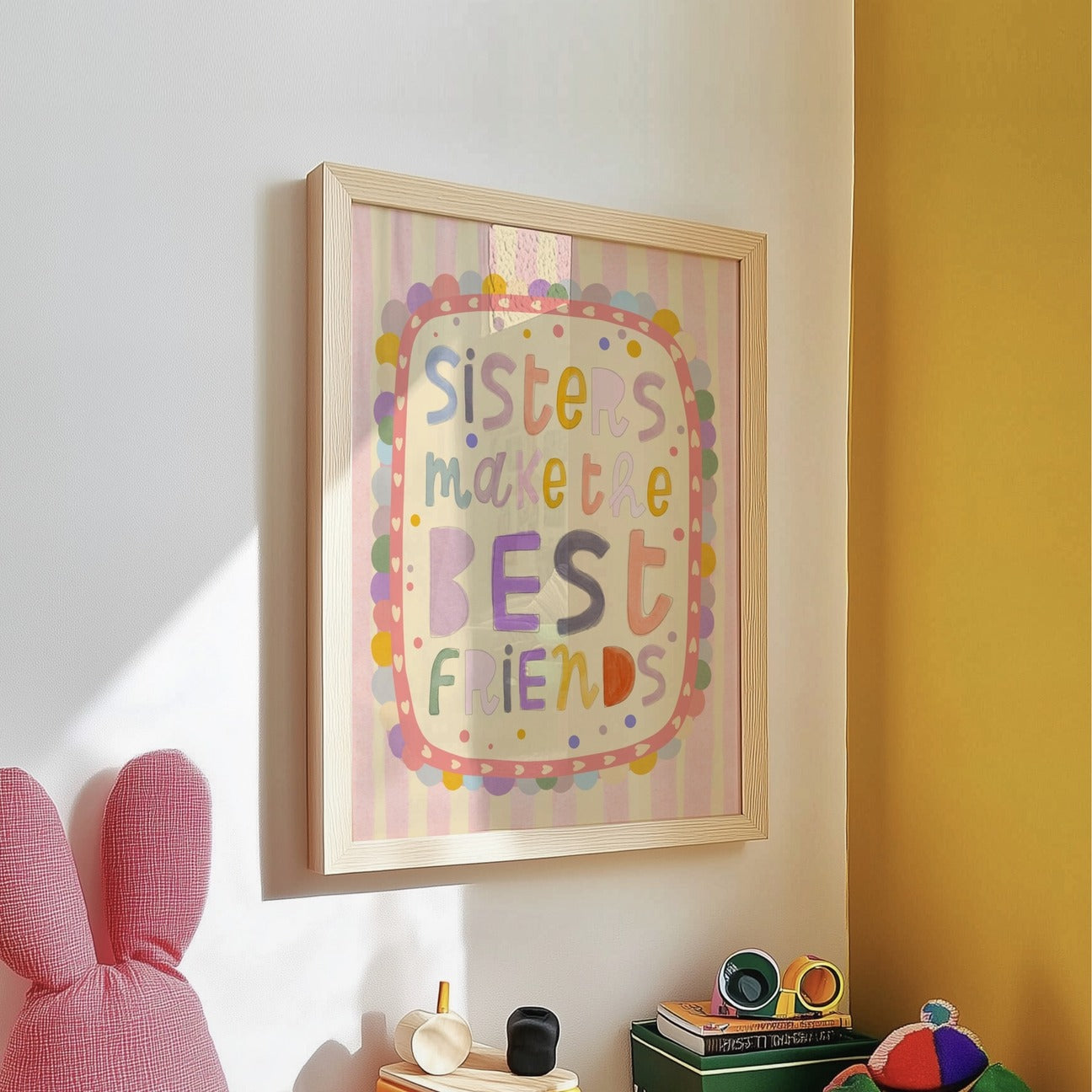Celebrate the special bond with the Lara & Kin Art Print - Sisters Make The Best Friends. This playful and heartwarming print captures the joy and laughter shared between sisters, making it a perfect addition to any home. Whether displayed in a bedroom, living room, or gifted to a beloved sister, its a cheerful reminder that sisters truly are lifelong friends. Brighten your space with this charming artwork that brings warmth and smiles every day.