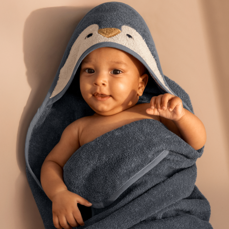 Wrap your little one in cozy softness with this extra gentle hooded towel. Crafted from 100% GOTS-certified organic cotton, it’s super absorbent and has adorable penguin features on the hood. Perfect for keeping your baby warm and snug right after bath time.