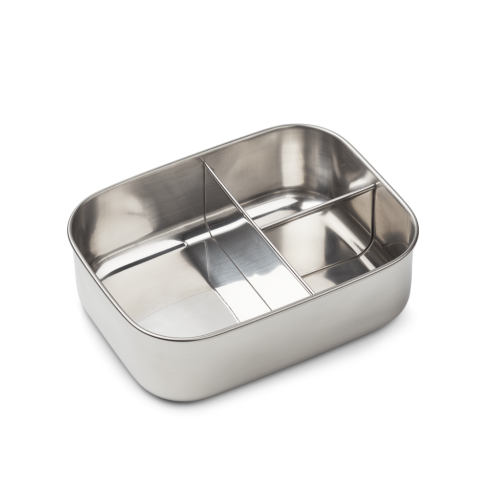 The Liewood classic lunchbox is the perfect lightweight lunchbox which is divided into three convenient compartments and finished with a flexible silicone lid. The base of the lunchbox is made from stainless steel, which ensures the material does not absorb the colour or scent of the contents.