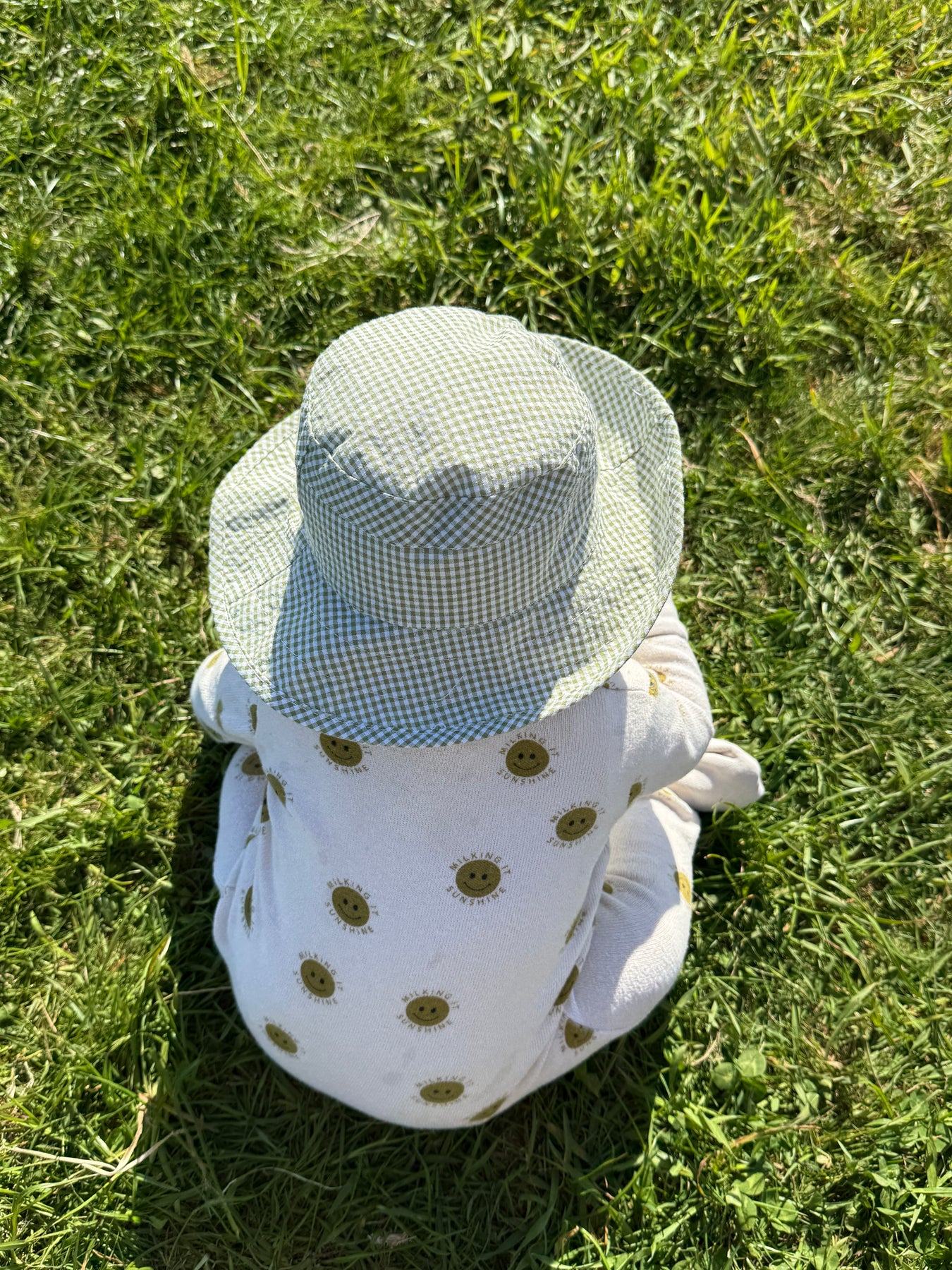 Your little ones will be the most stylish adventurer with our Mabel & Fox gingham sun hat! The adorable sage colour and fisherman style hat will have them looking super cute while staying cool in the sun. The wide brim provides extra shade and the draw string ensures it stays on their head during any adventure.
