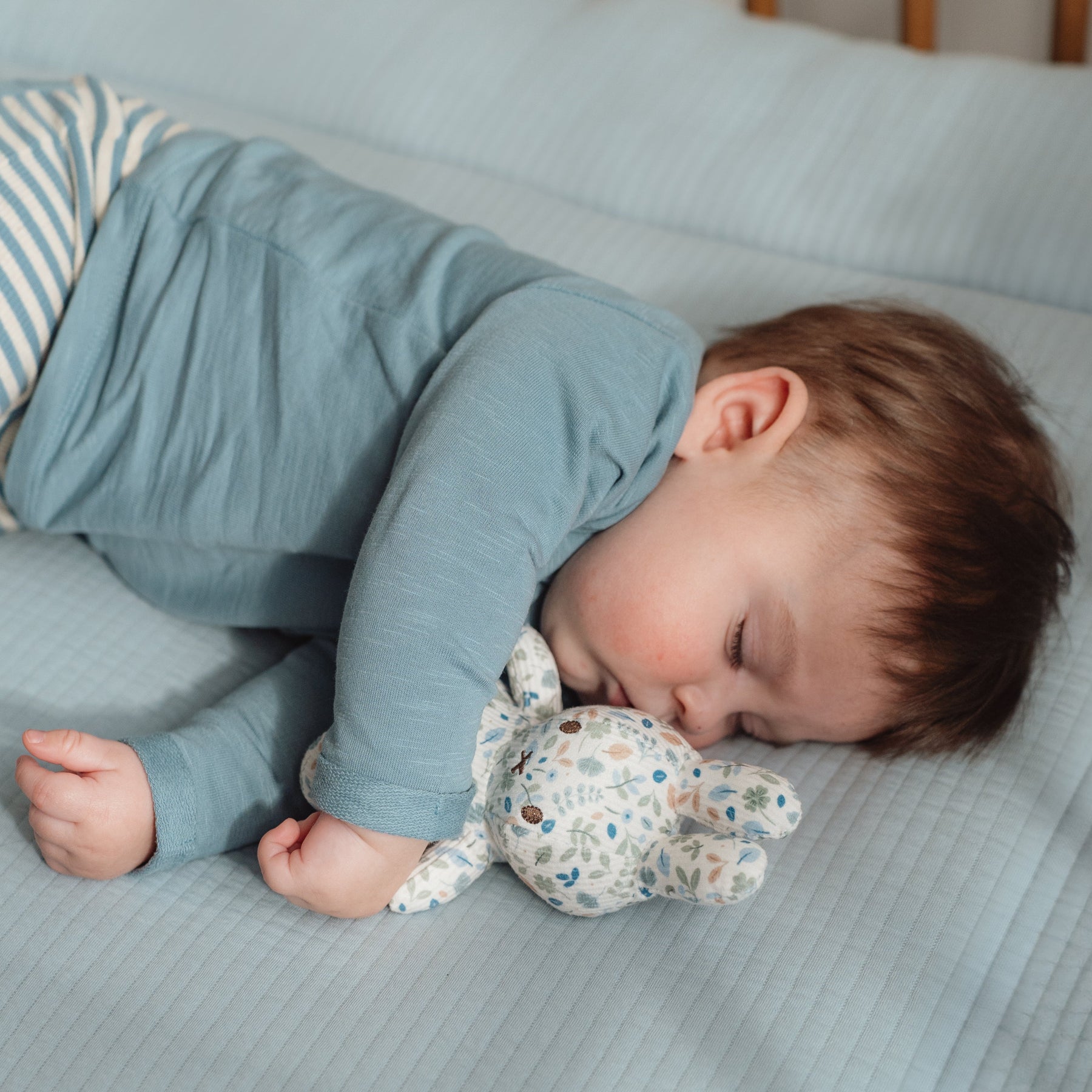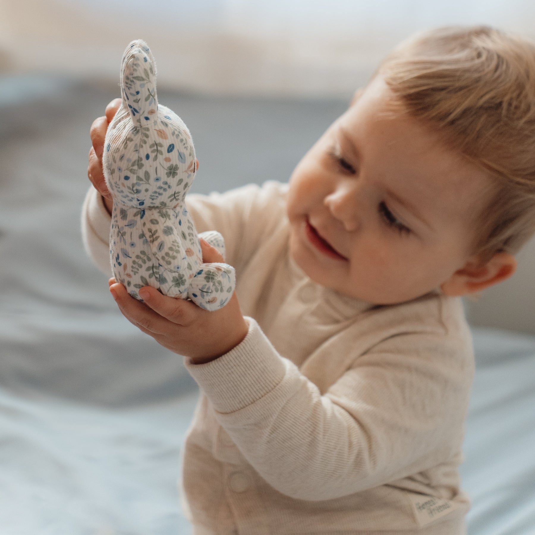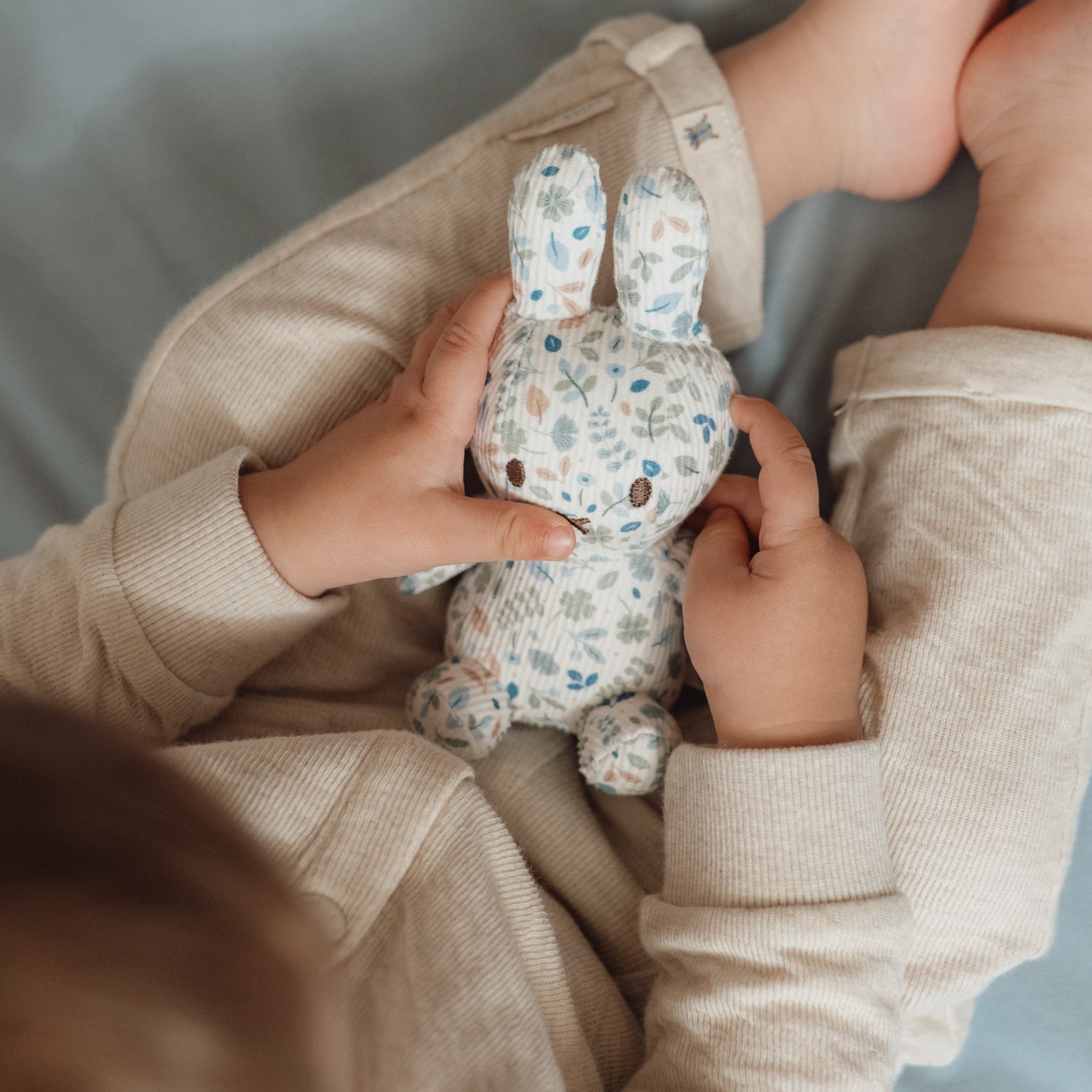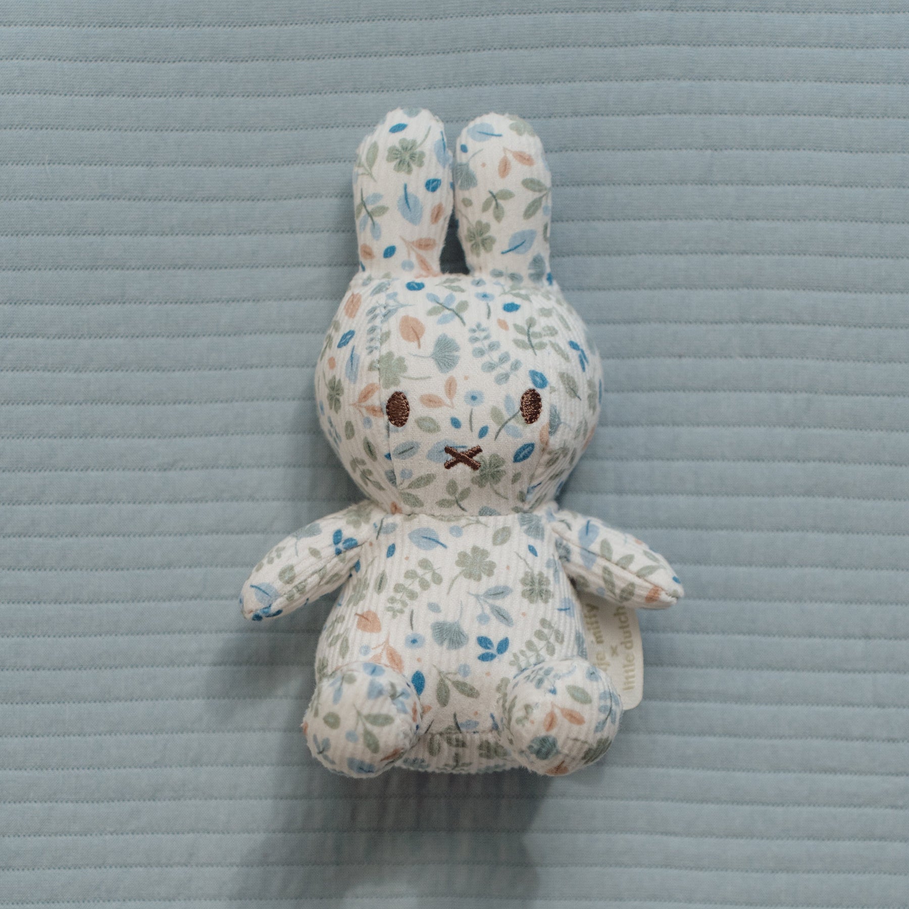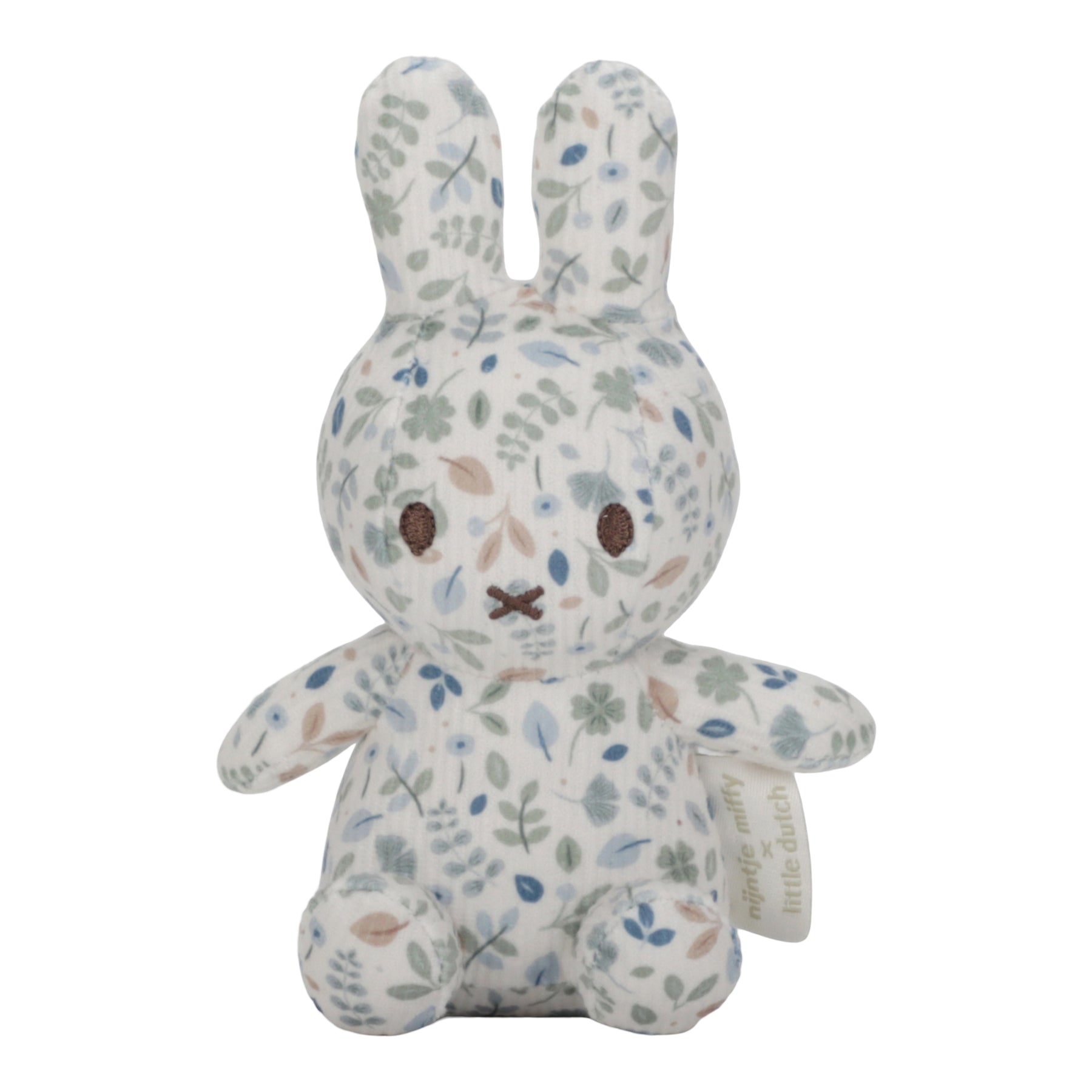 Ready for a hug? This little Miffy is waiting for your little one to snuggle and cuddle. She's incredibly soft and the perfect size to bring along on every adventure. Covered all over in a lovely Lucky Leaf print, this cuddle toy is the loveliest Miffy of all! It's soft with a retro appearance and brightens up your day. An icon bunny that no nursery can do without!