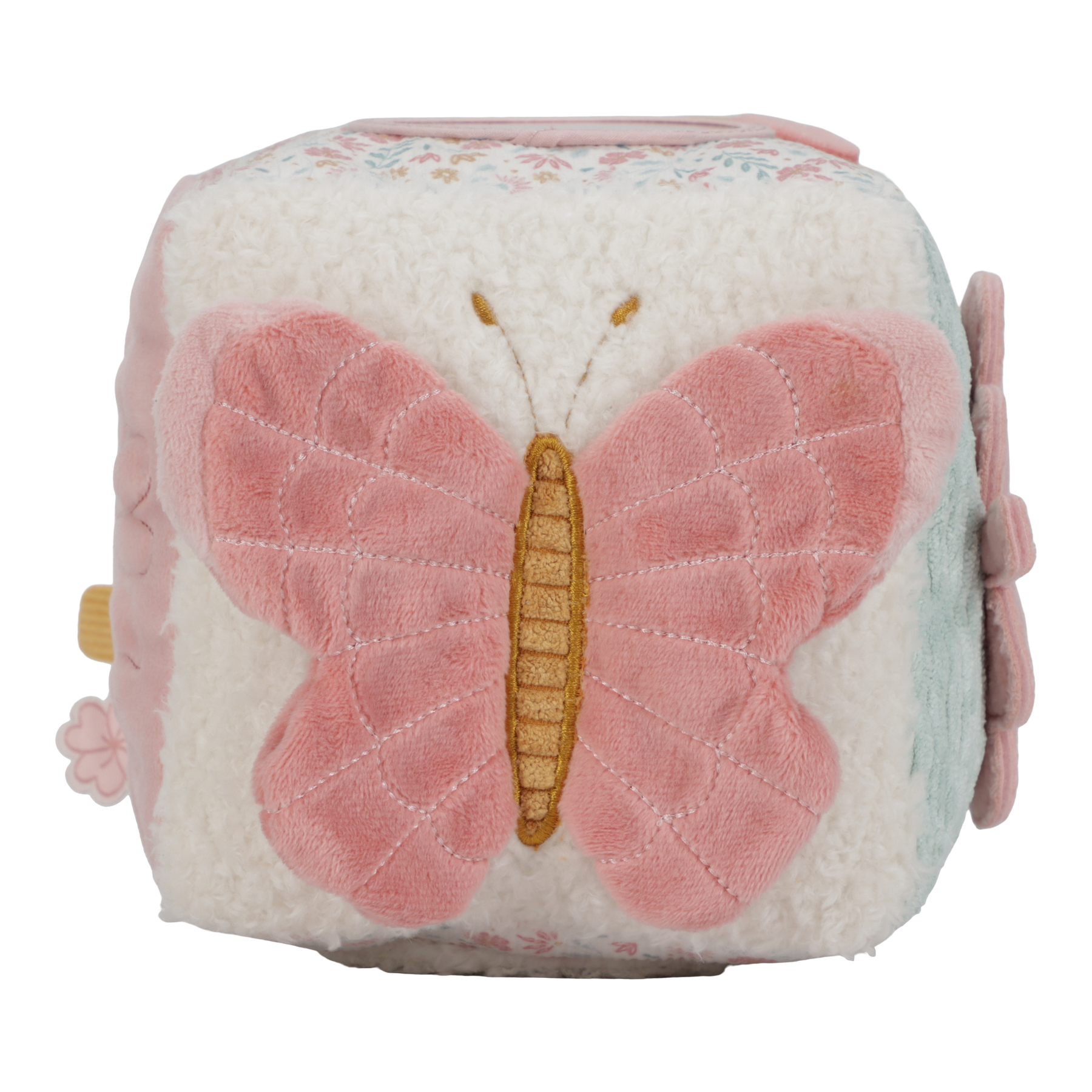 This super soft Little Dutch activity cube in soft tones blush and floral will surely arouse the curiosity of your little one. Each side is equipped with a different activity with different textures and shapes that help develop the senses and, of course, provide endless entertainment! The cube can be gripped and twisted and has a mirror for self-discovery. Explore the full Little Dutch range or shop our playtime collection. Features of the Little Dutch Soft Activity Cube - Lucky Blossom: