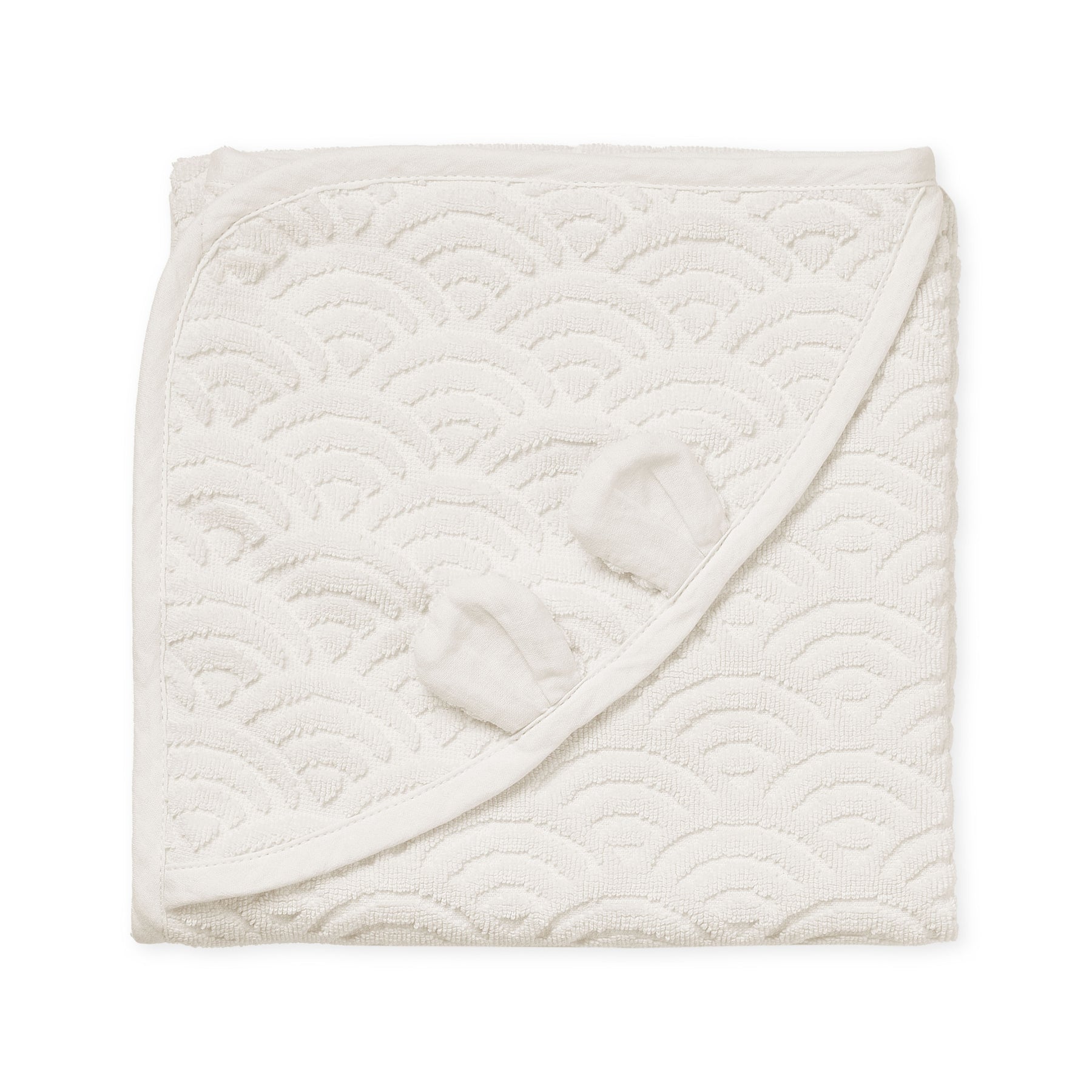 Soft, lush, and thick Baby Towel made from 100% GOTS-certified organic cotton and woven in the iconic Cam Cam wave pattern. The towel has a small hood with the cutest little bear ears and is perfect for snuggling after a warm bath. The airy wave pattern makes the towel fast drying.