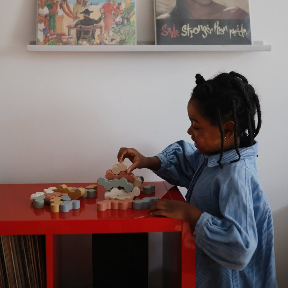 Introduce little ones to the world of creativity and coordination with Mushie’s Wooden Balance Blocks.