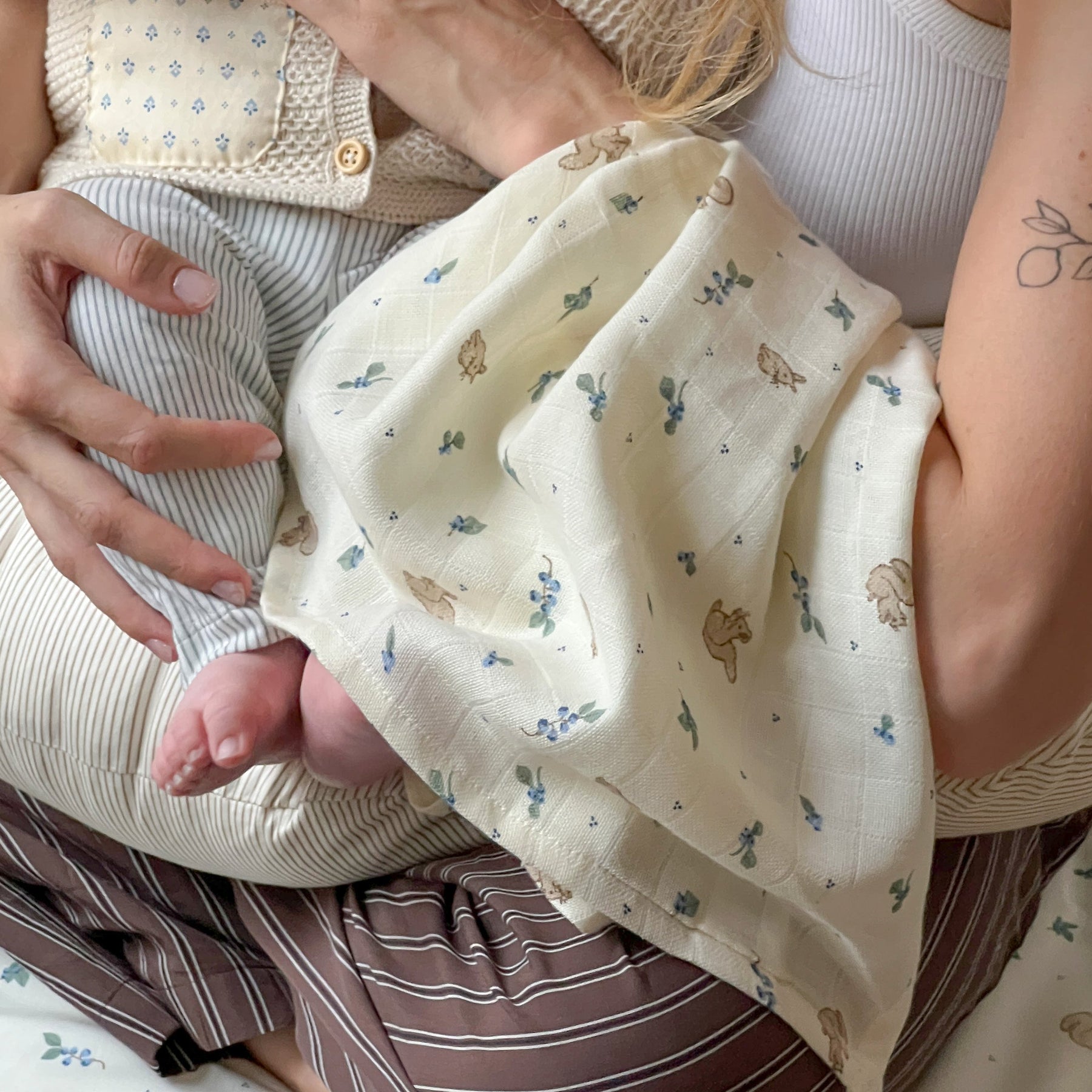 This delightful mixed 2-pack of Blueberry soft muslin cloths are 100% premium organic cotton, perfect for every little one!